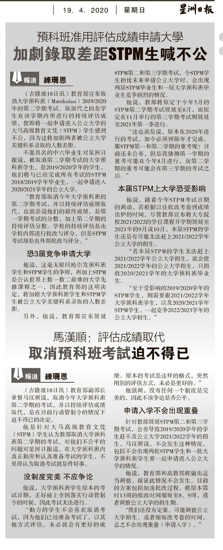 预科班准用评估成绩申请大学 加剧录取差距STPM生喊不公
