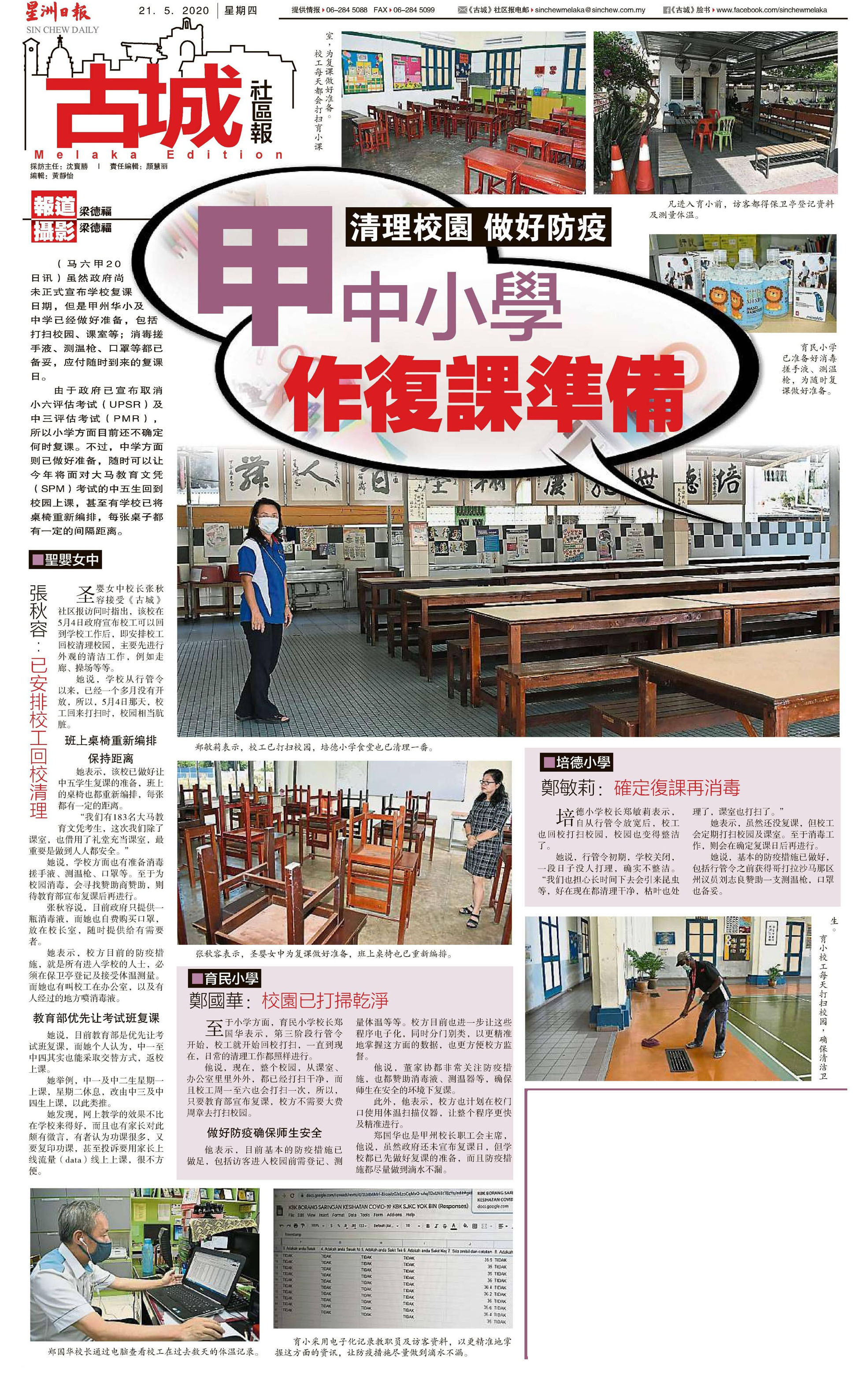下一篇文章: 复课限每班20学生 半数华小缺课室教室