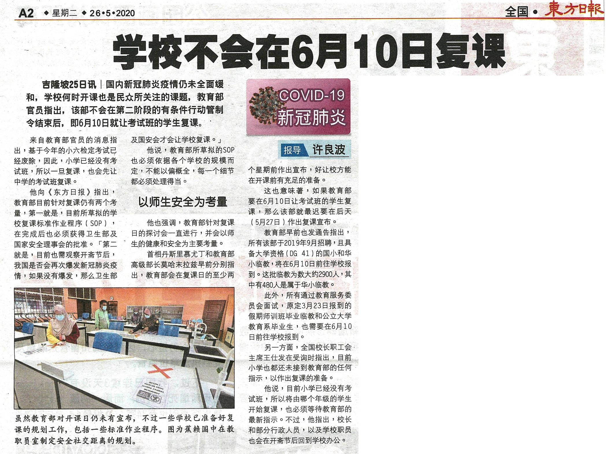 下一篇文章: 华小校长:等SOP公布重划班数 筹备复课后防疫措施