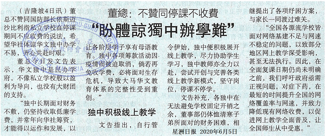 董总:不赞同停课不收费 “盼体谅独中办学难”