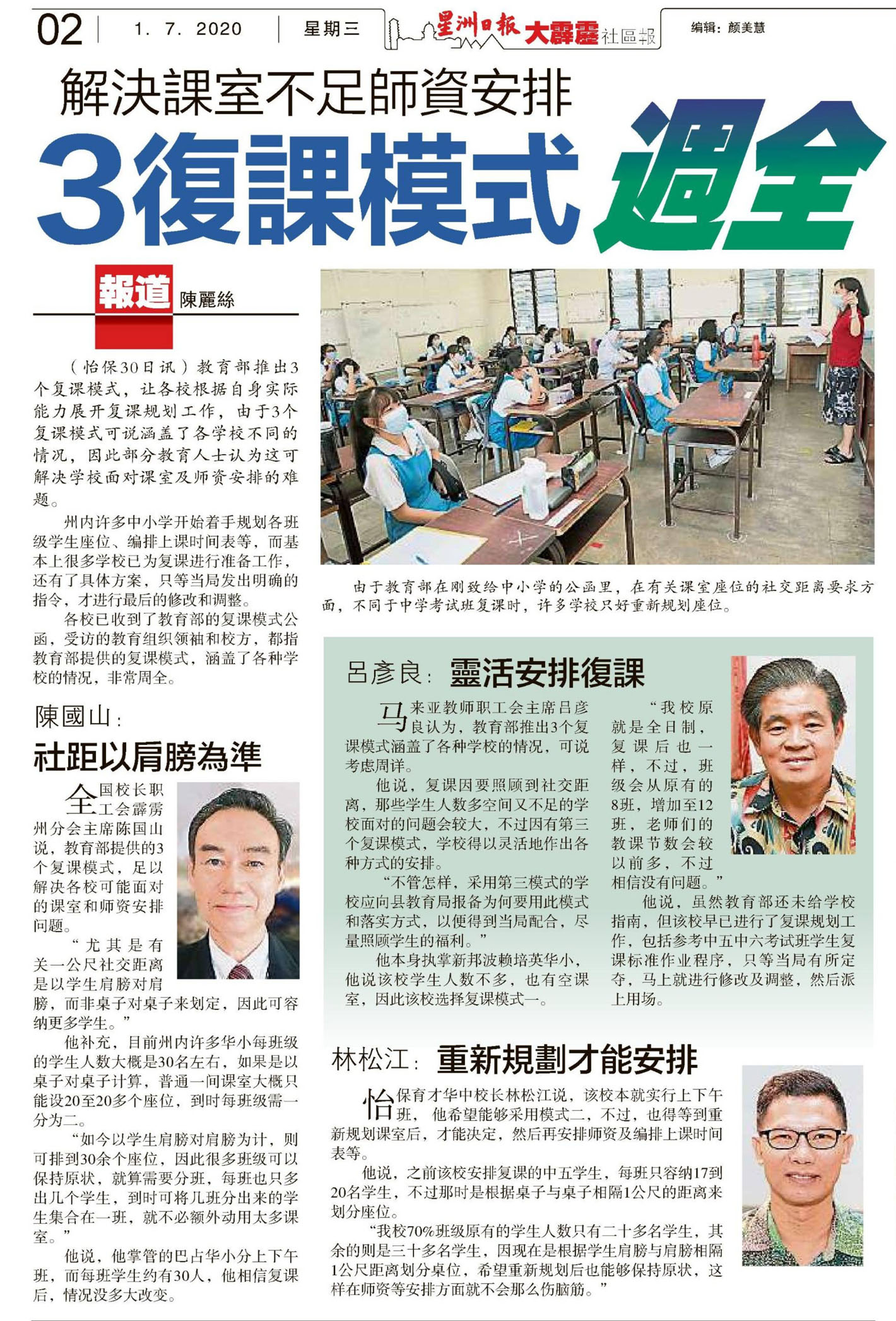 解决课室不足师资安排 3复课模式周全