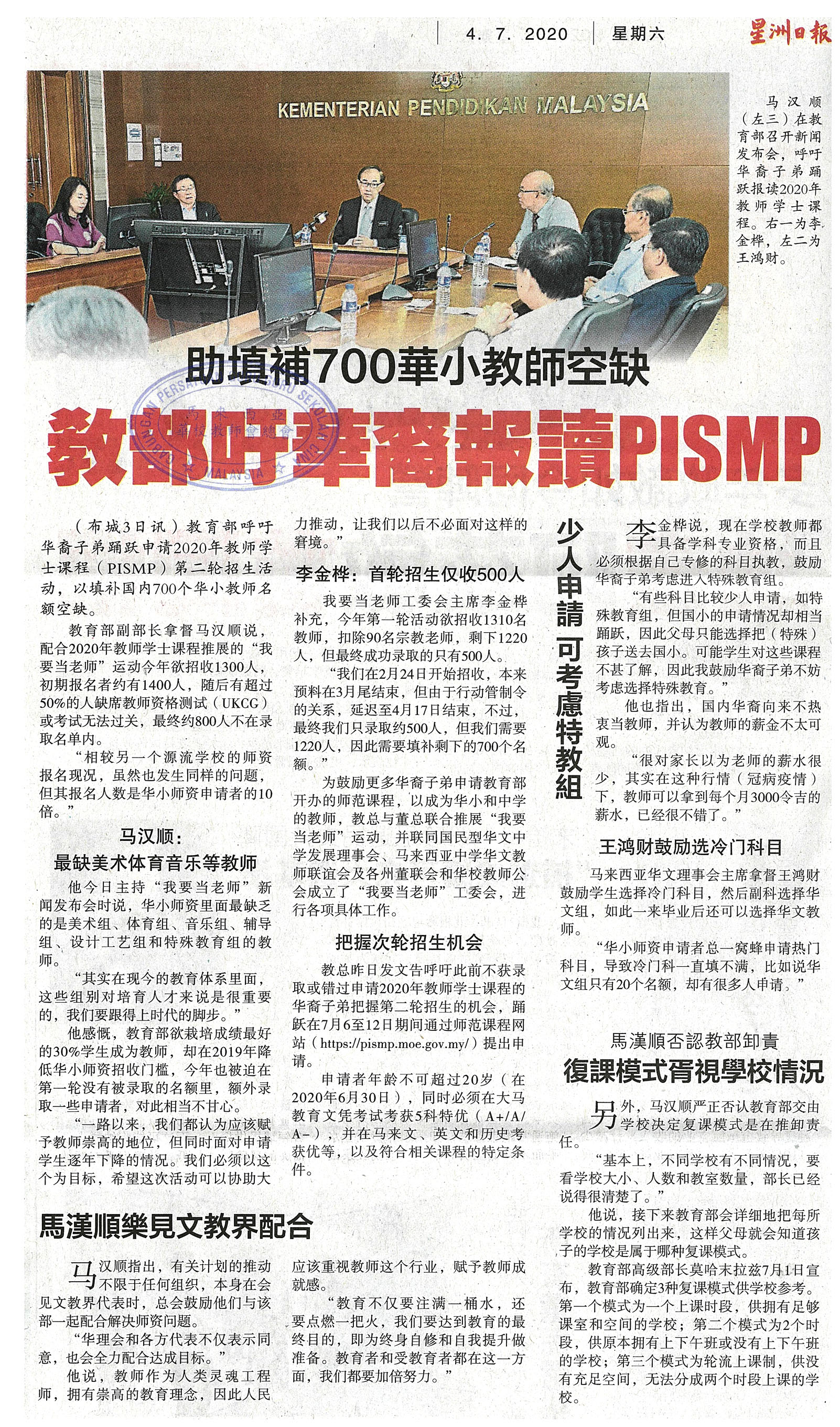 助填补700华小教师空缺 教部吁华裔报读PISMP