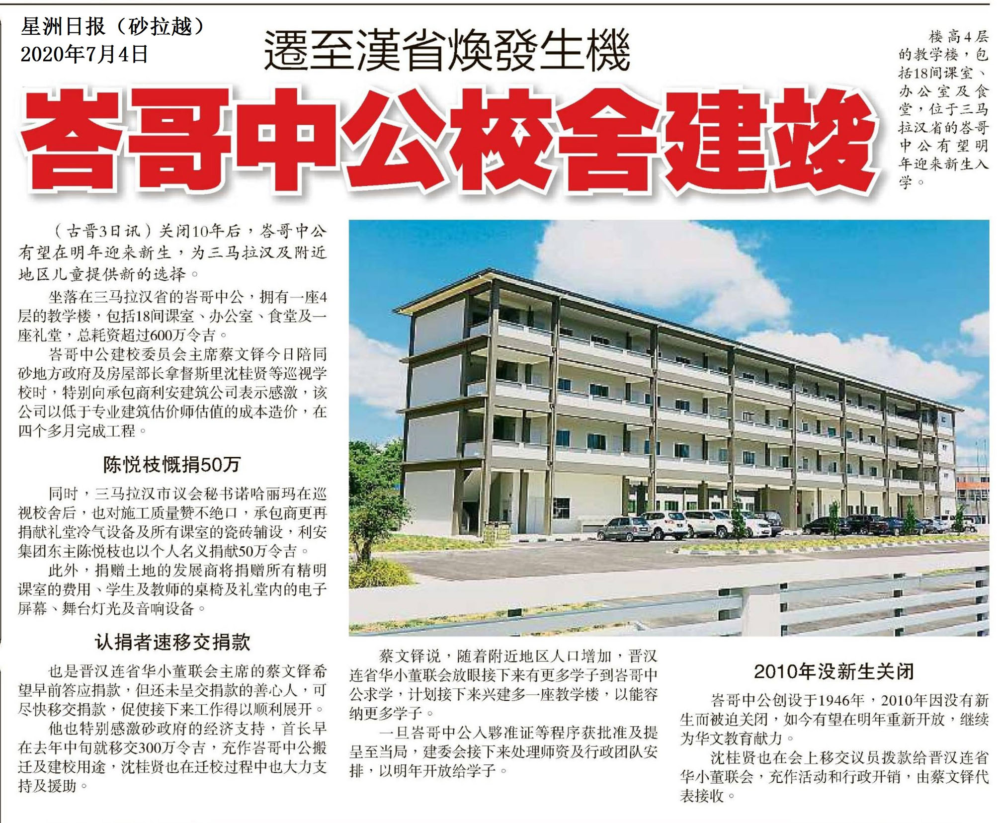 迁至汉省焕发生机 峇哥中公校舍建竣
