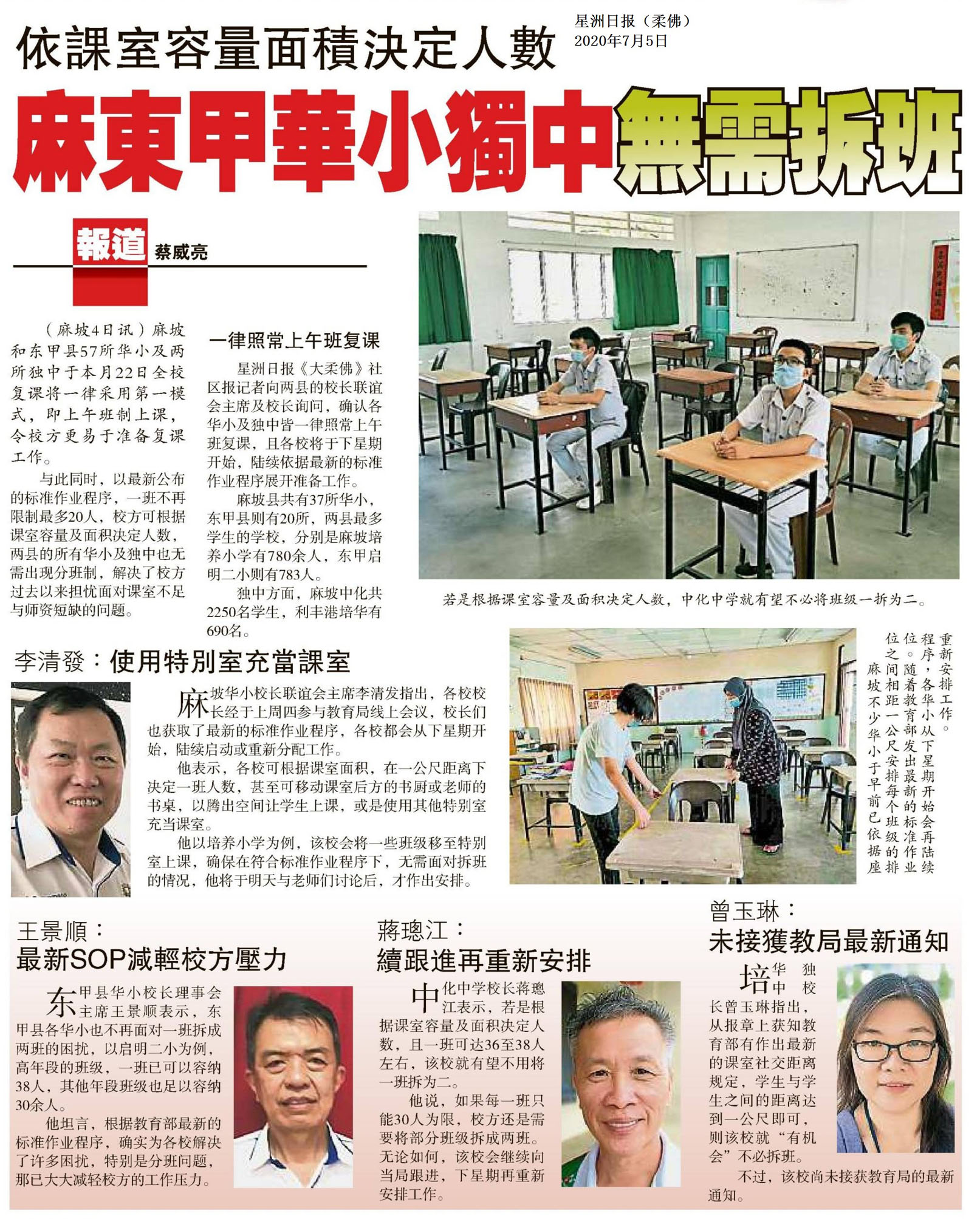 依课室容量面积决定人数 麻东甲华小独中无需拆班