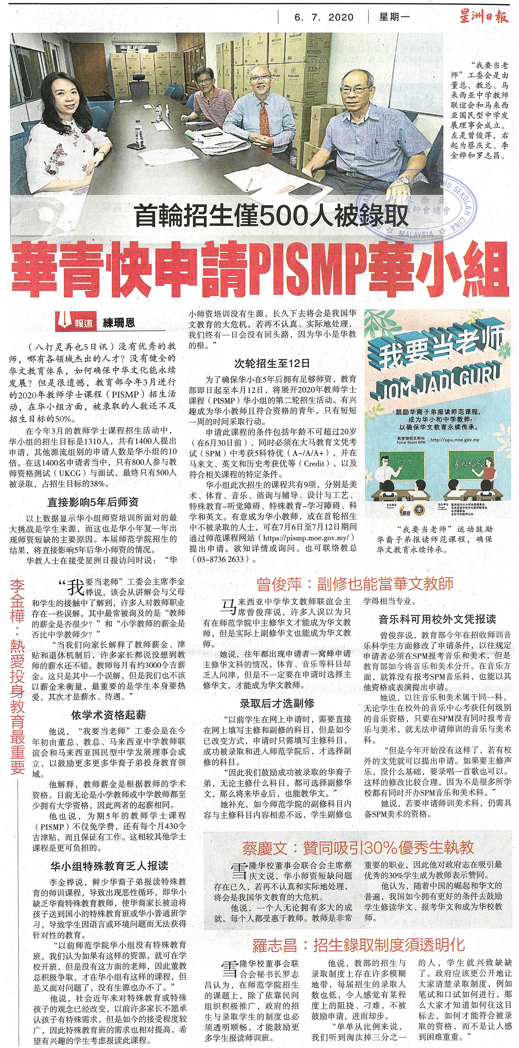 首轮招生仅500人被录取 华青快申请PISMP华小组 WhatsApp 上一篇文章: 师资分配华小头痛 沙教总吁教育部复课前拟指南 上一页 下一篇文章: 依课室容量面积决定人数 麻东甲华小独中无需拆班 下一页