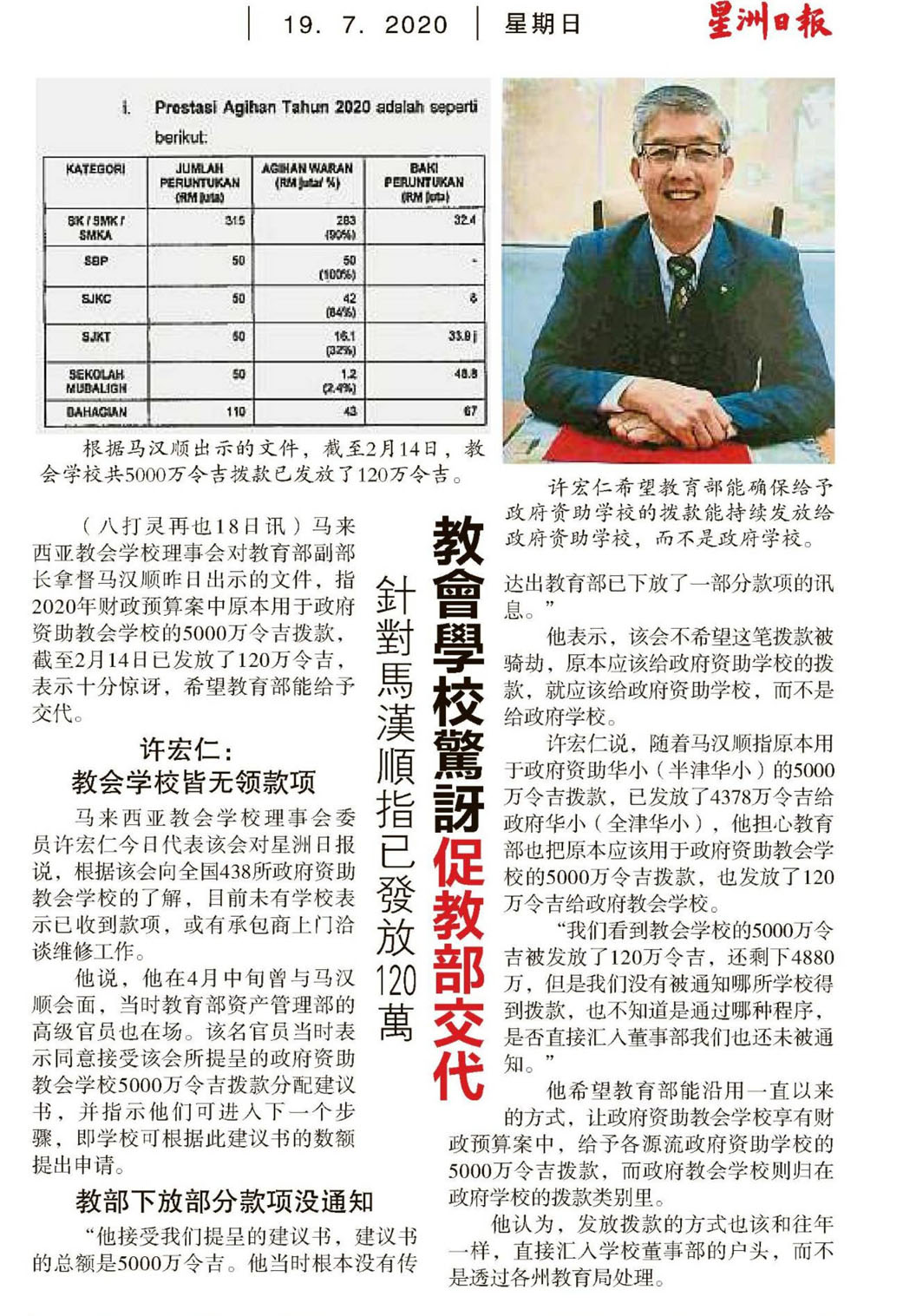 针对马汉顺指已发放120万 教会学校惊讶促教部交代