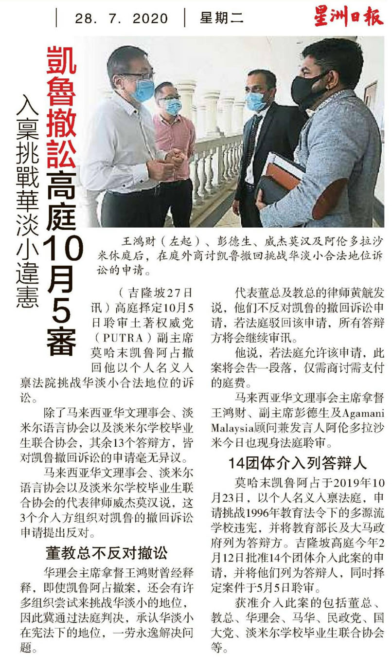 入禀挑战华淡小违宪 凯鲁撤讼高庭10月5审 WhatsApp 上一篇文章: 就读台湾大学8为非华裔生 45大马生获台教部奖学金 上一页 下一篇文章: “副校长不愿当校长” 黄博谆:丹华校恐空面对校长荒 下一页