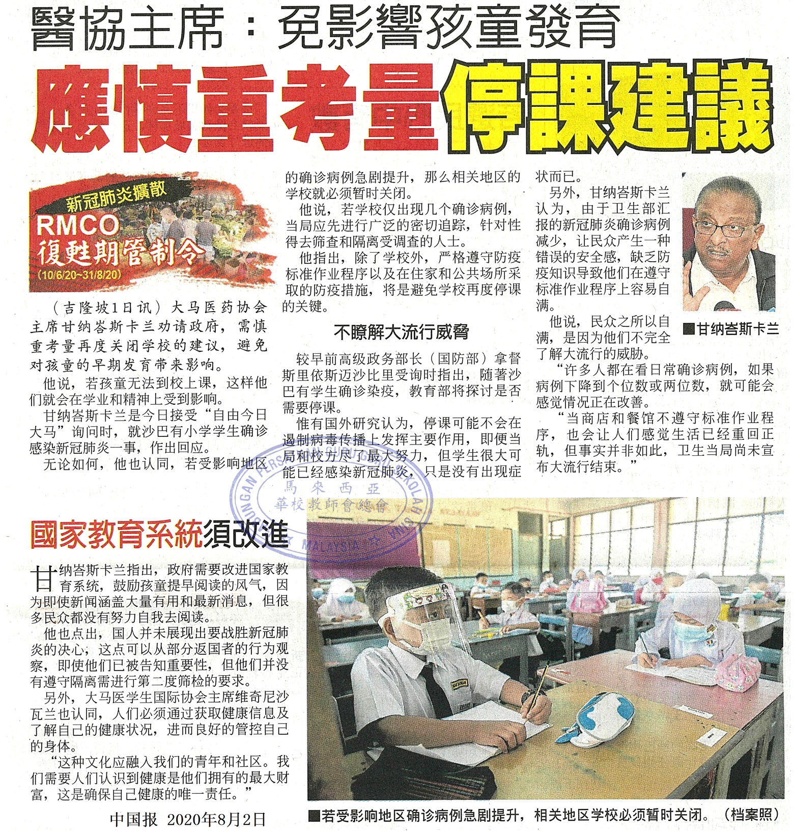 医协主席:免影响孩童发育 应慎重考量停课建议