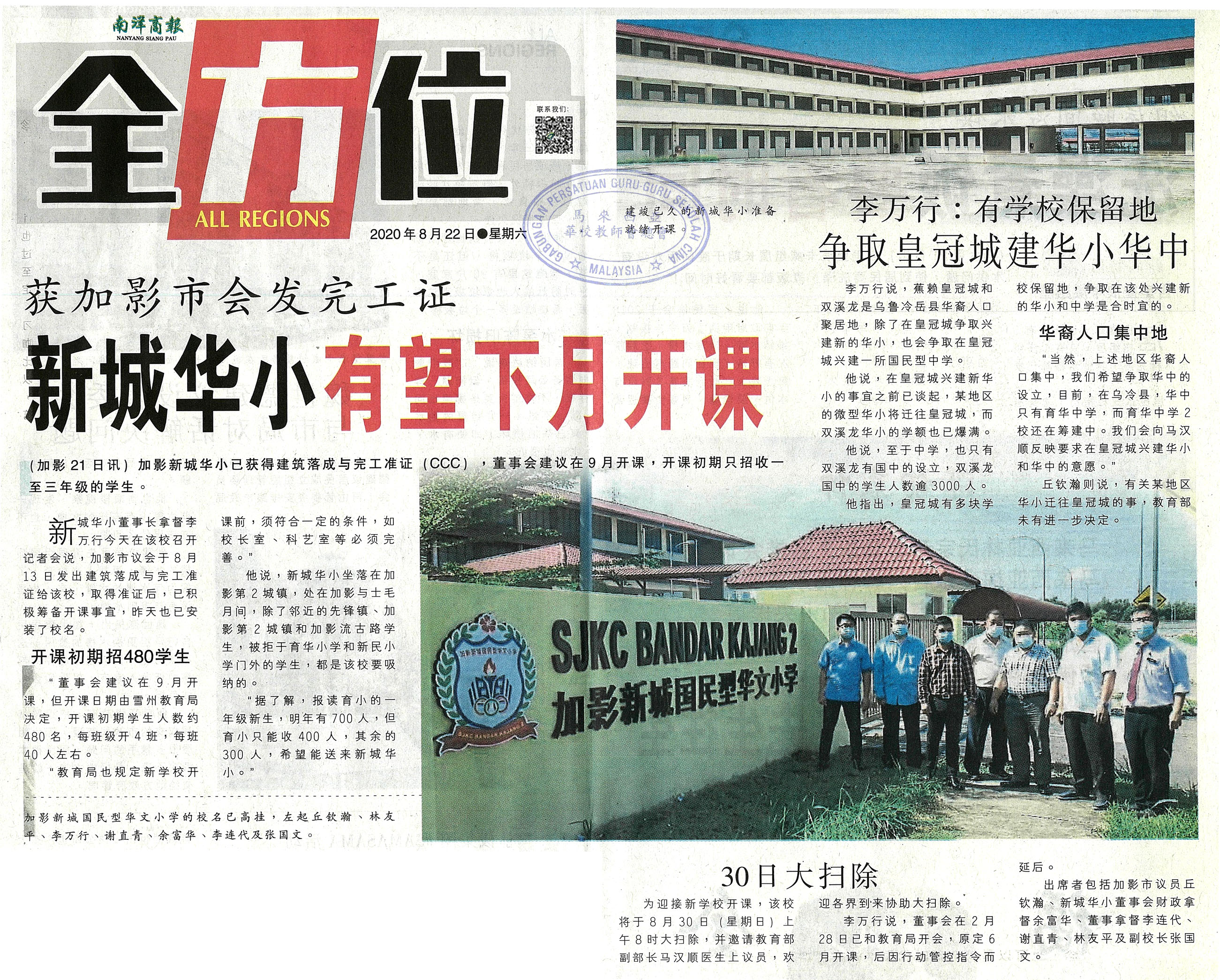 获加影市会发完工证 新城华小有望下月开课