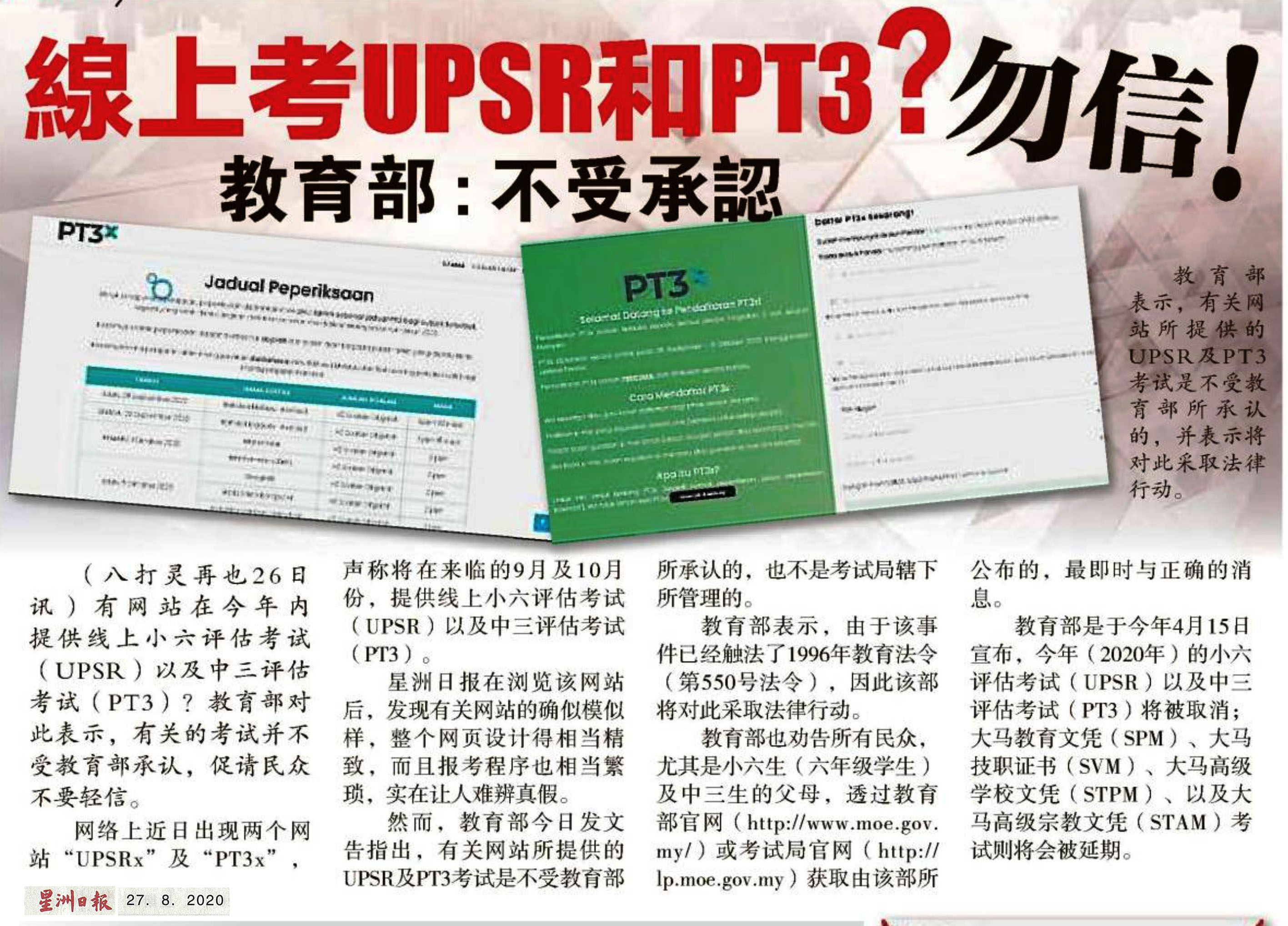 线上考UPSR和PT3?勿信! 教育部:不受承认