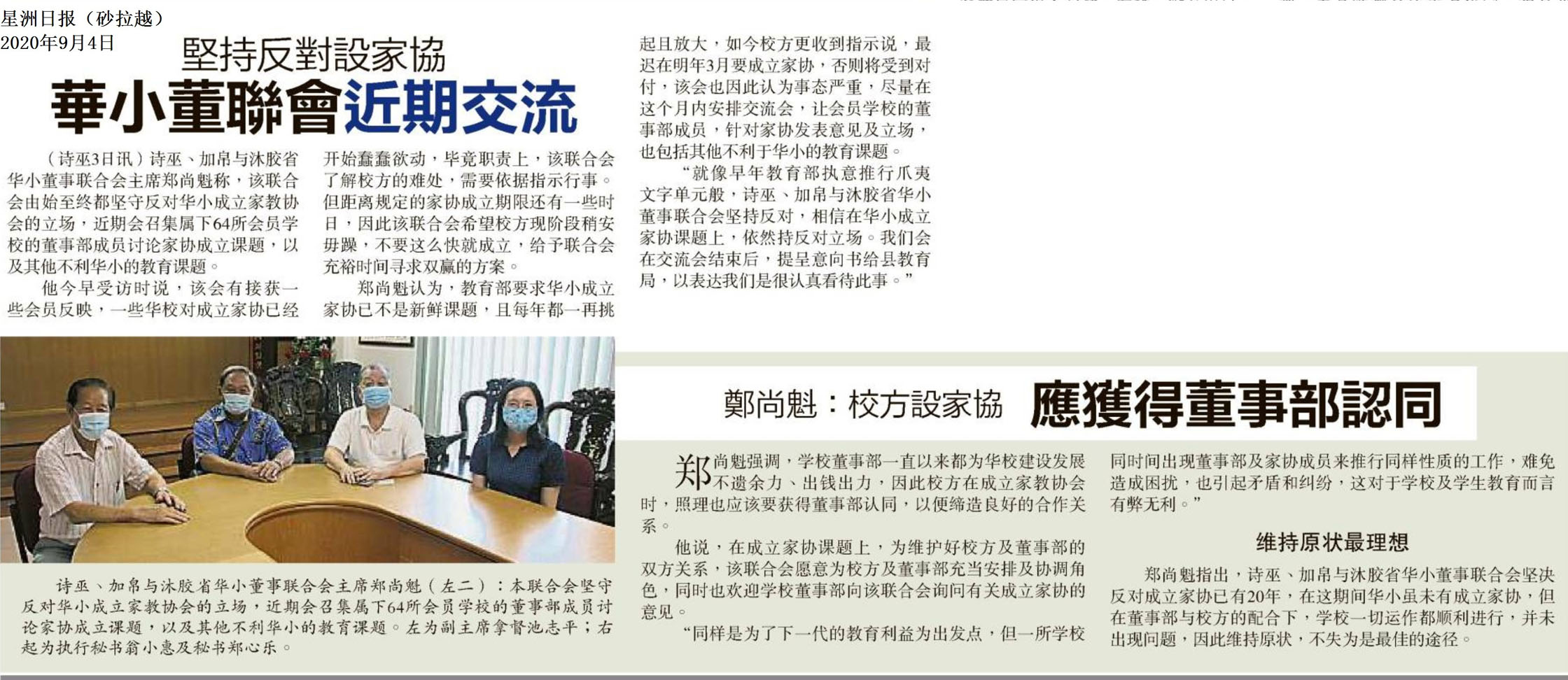 坚决反对设家协 华小董联会近期交流