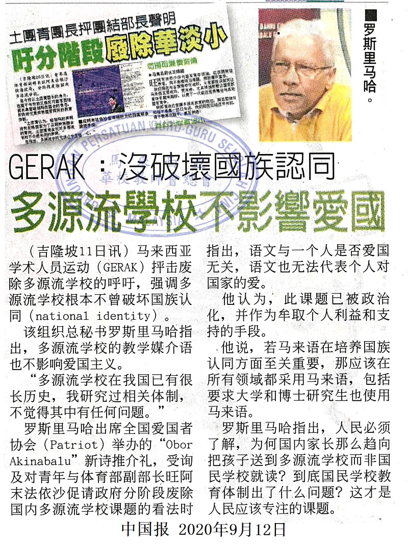 GERAK:没破坏国族认同 多源流学校不影响爱国