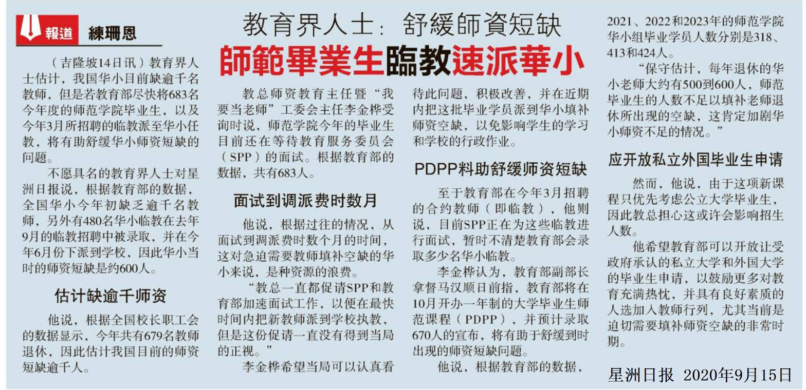 教育界人士:舒缓师资短缺 师范毕业生临教速派华小