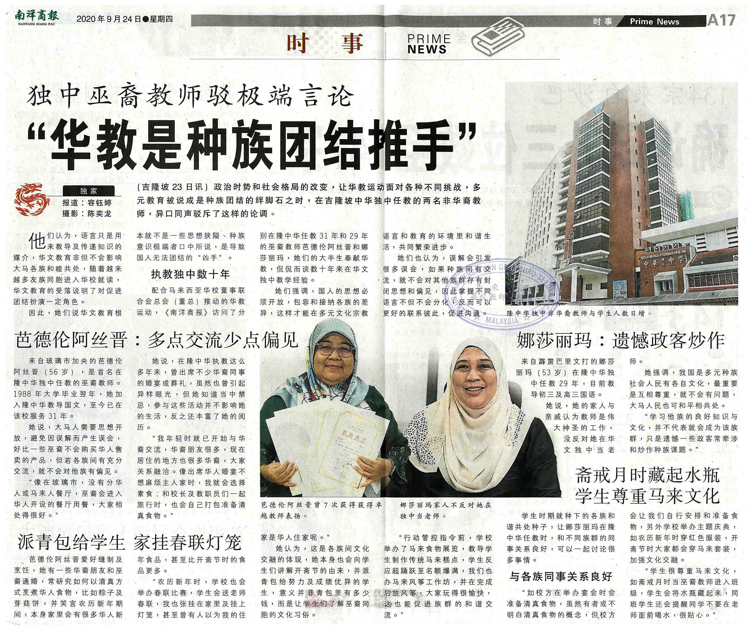 独中巫裔教师驳极端言论 “华教是种族团结推手”