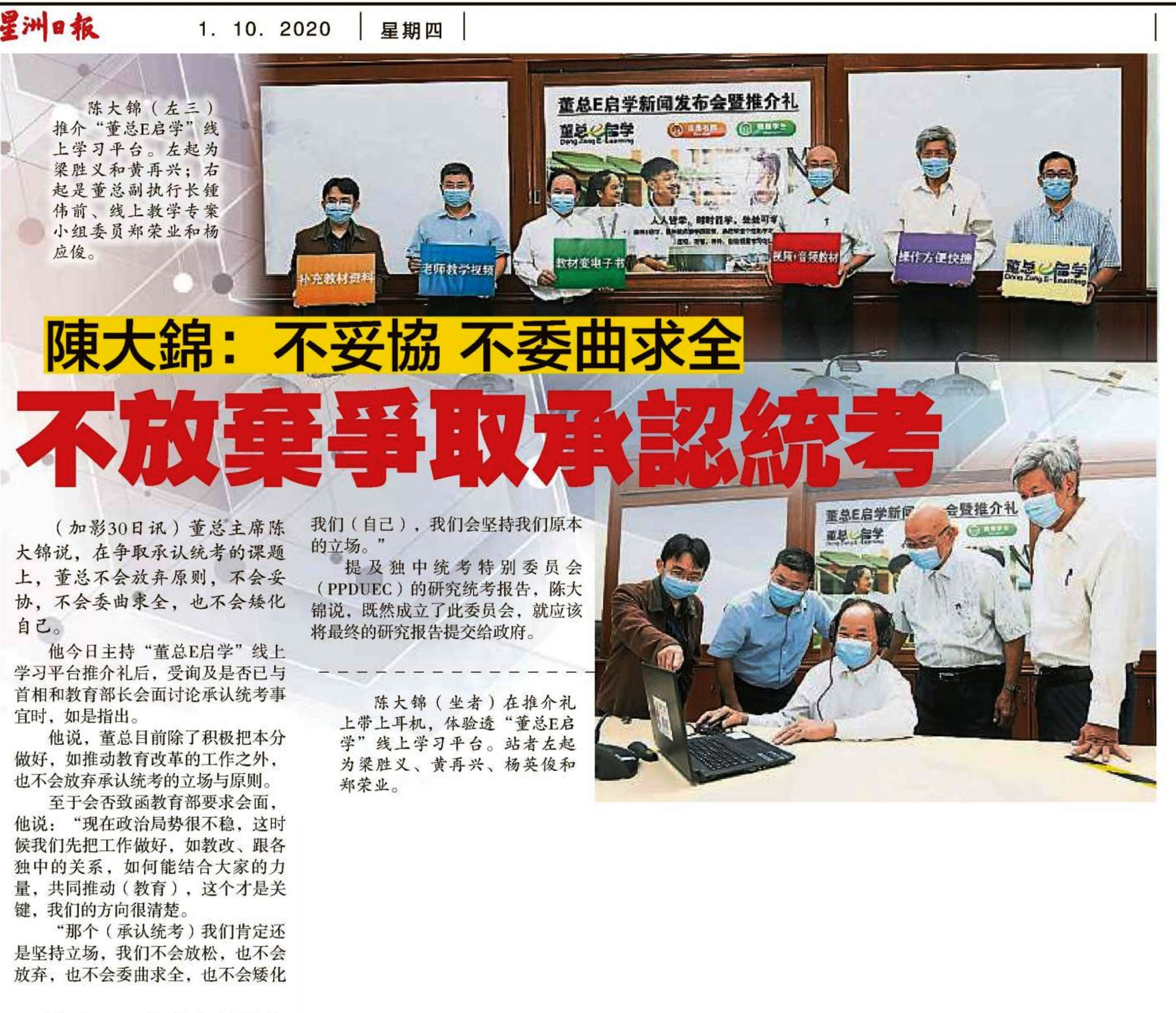 陈大锦:不妥协 不委曲求全 不放弃争取承认统考