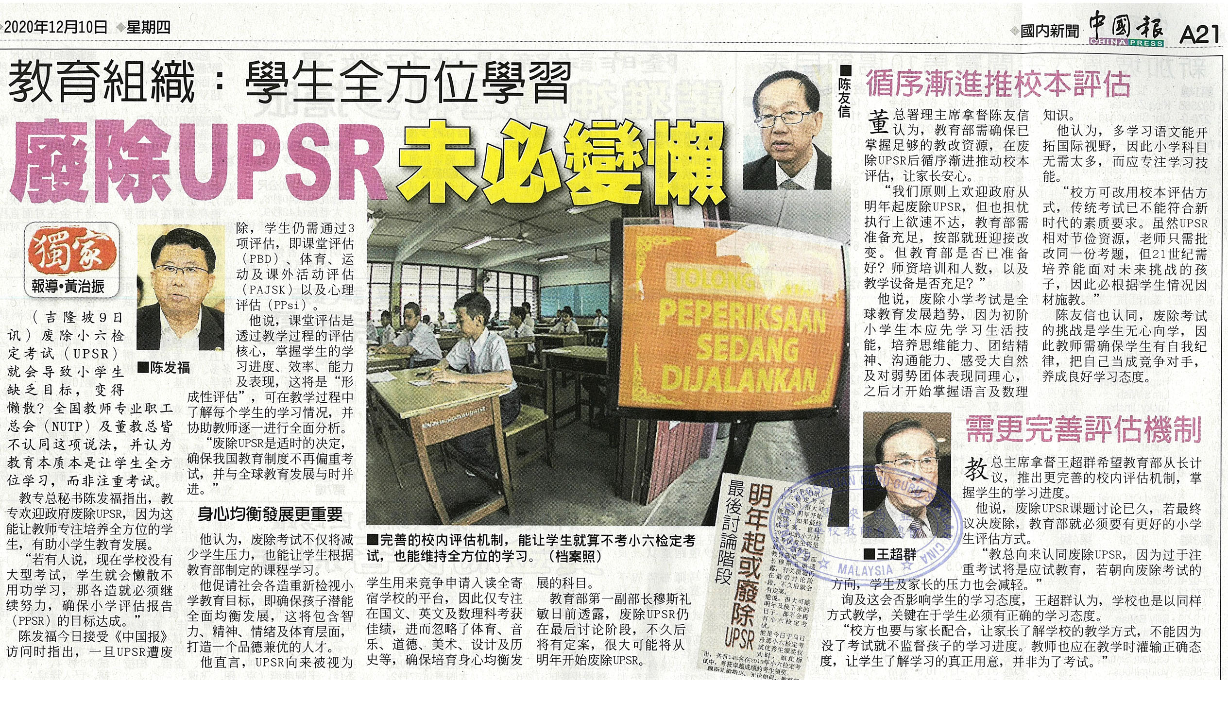 教育组织:学生全方位学习 废除UPSR未必变懒