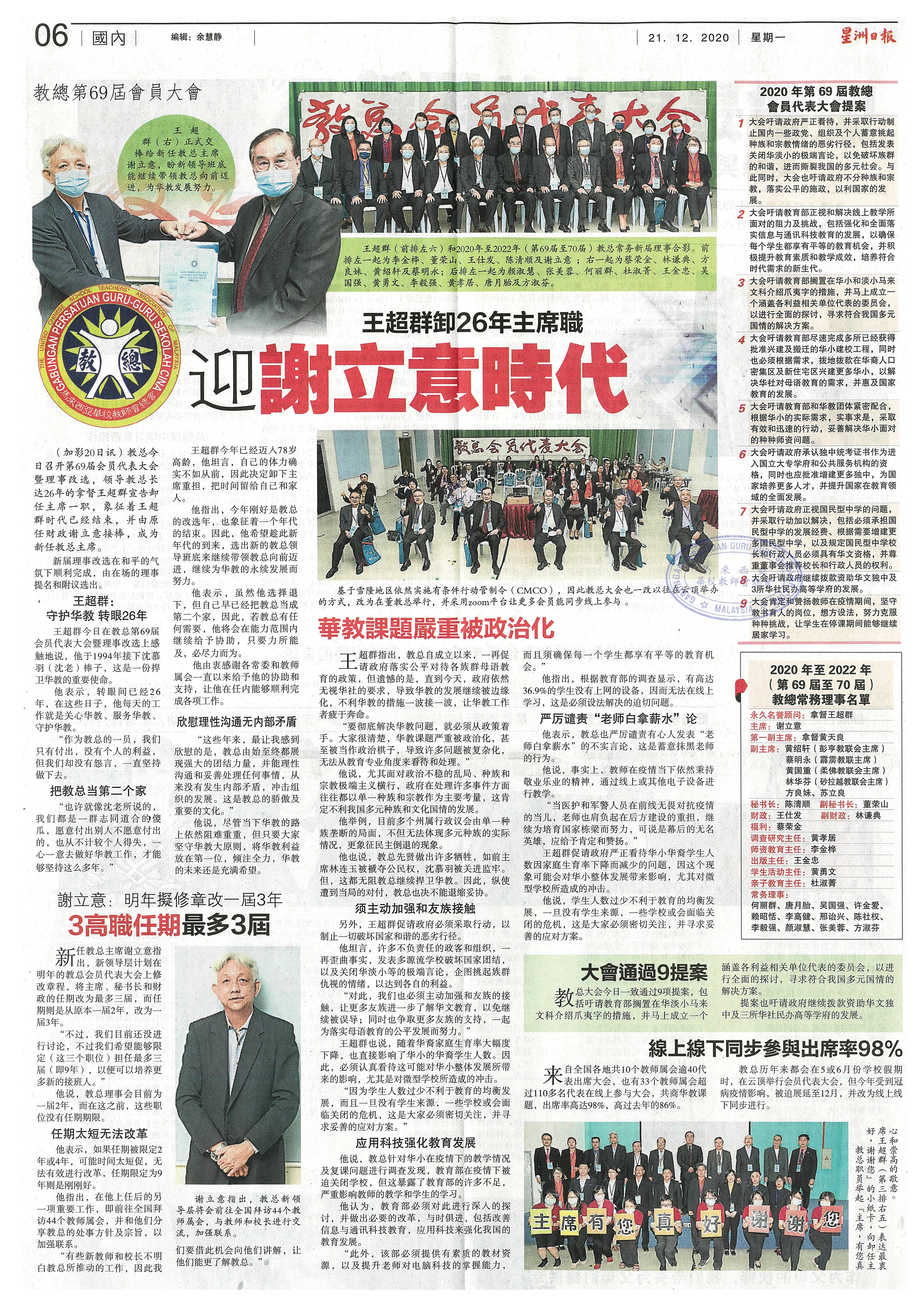 王超群卸26年主席职 迎谢立意时代