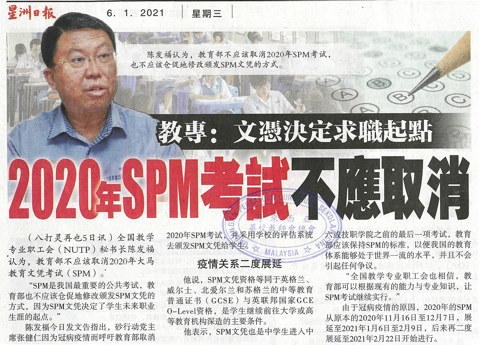 教专:文凭决定求职起点 2020年SPM考试不应取消