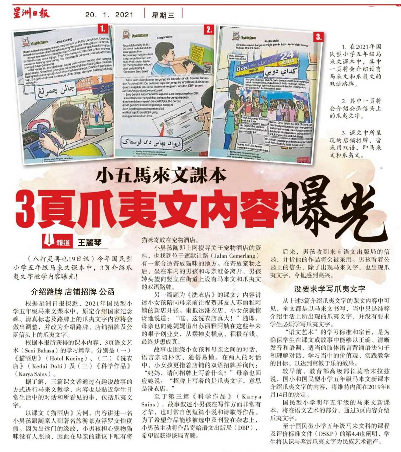 小五马来文课本 3页爪夷文内容曝光