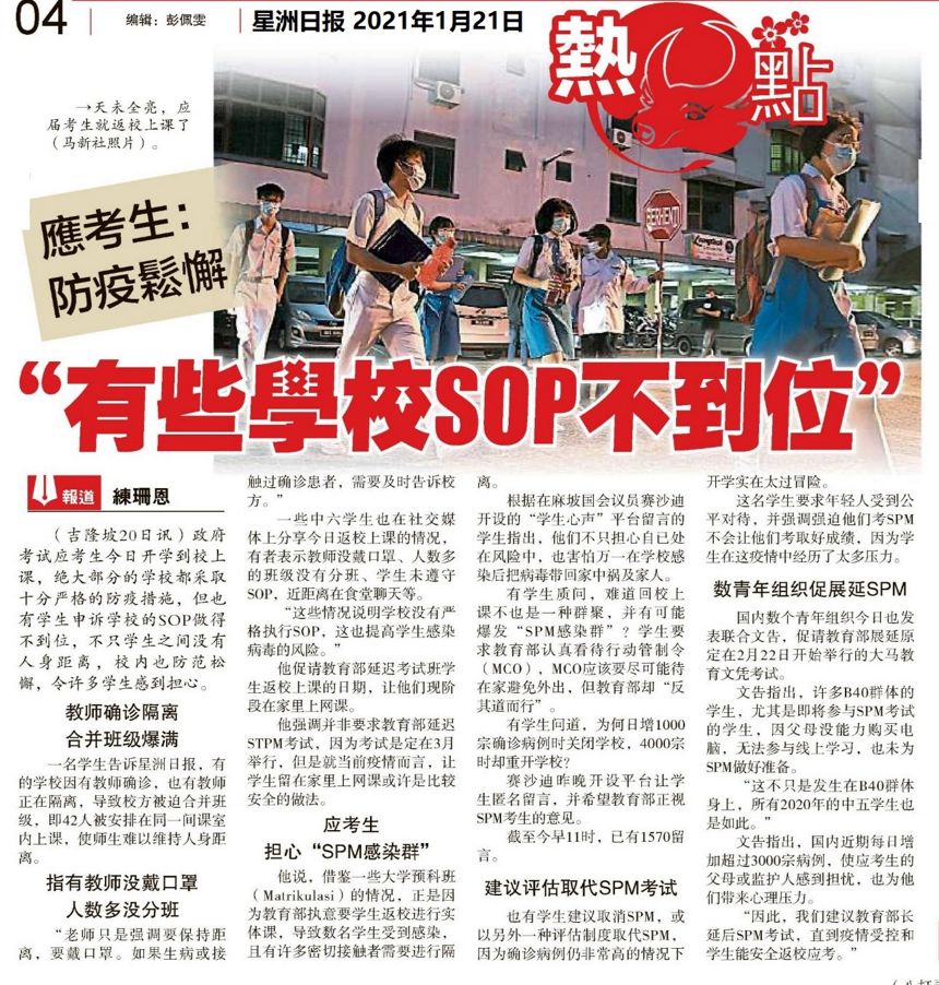 上一篇文章: 指部分学校未严守SOP 应考生返校忐忑