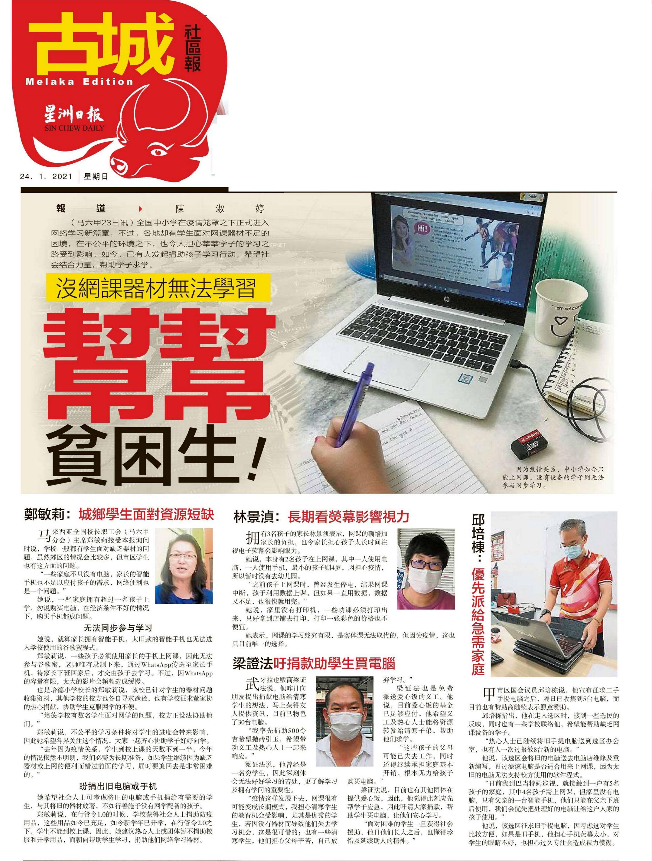 没网课器材无法学习 帮帮贫困生