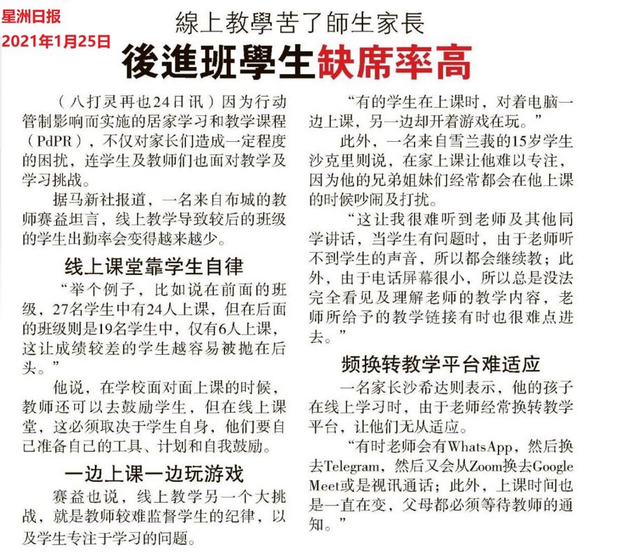 线上教学苦了师生家长 后进班学生缺席率高