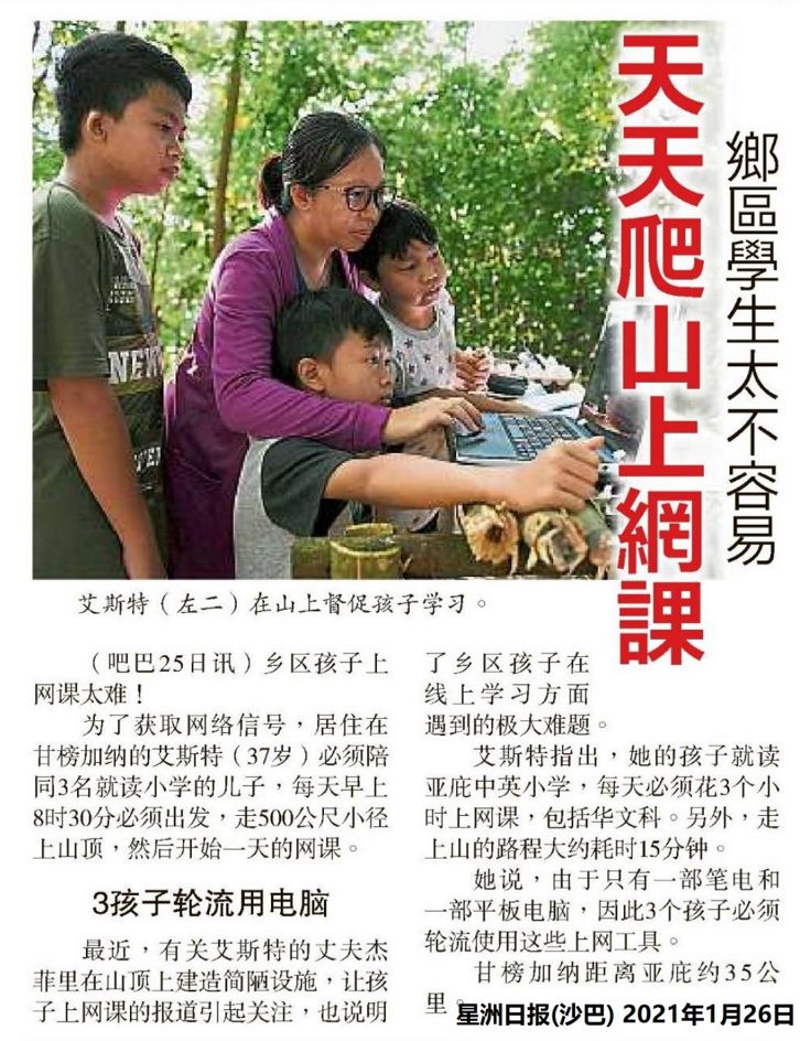 下一篇文章: 甘榜学生苦寻网线 油棕园变课室