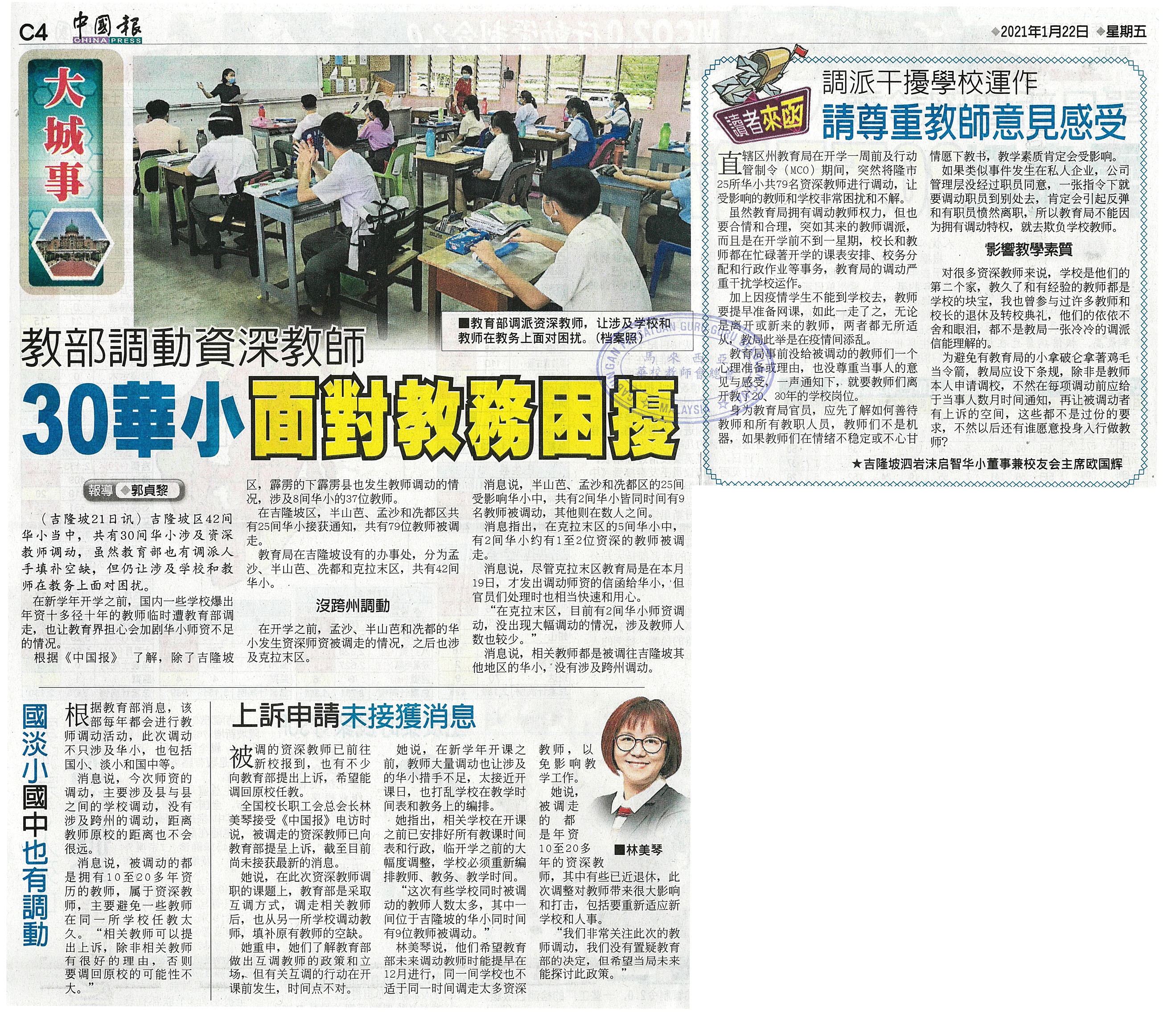 教育部调动资深教师 30华小面对教务困扰