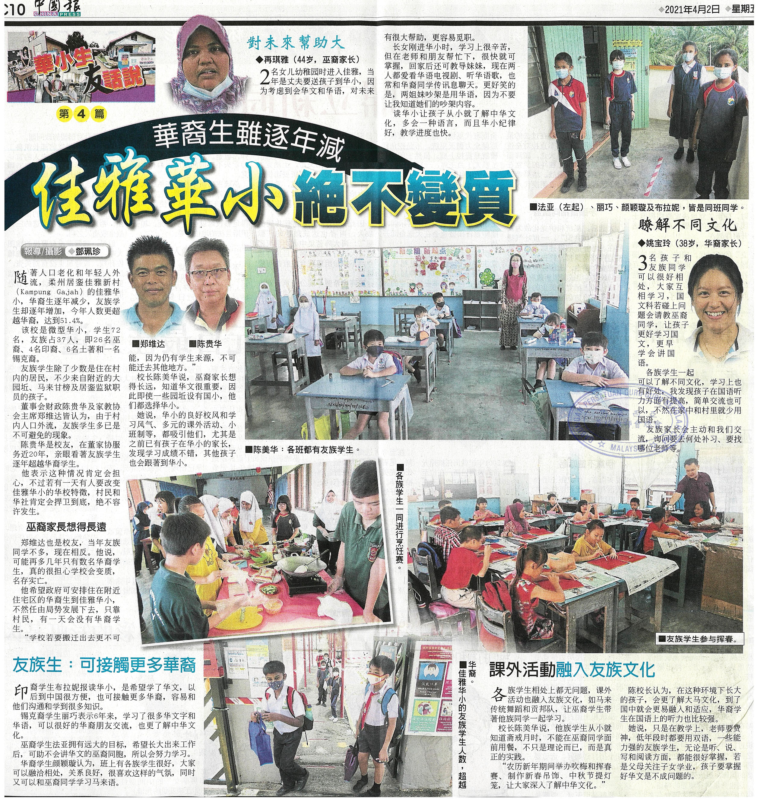 华裔生虽逐年减 佳雅华小绝不变质