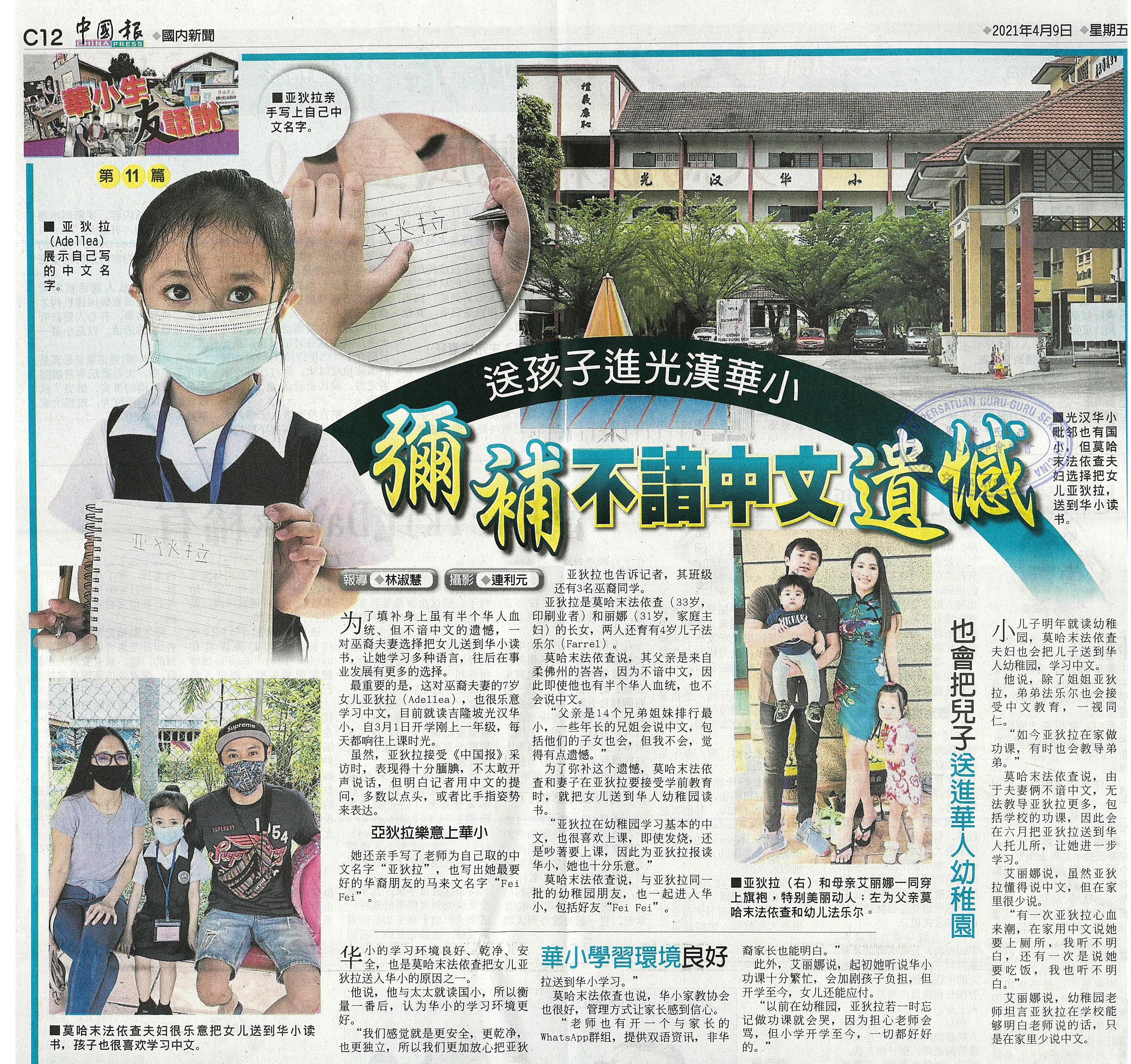 送孩子进光汉华小 弥补不谙中文遗憾