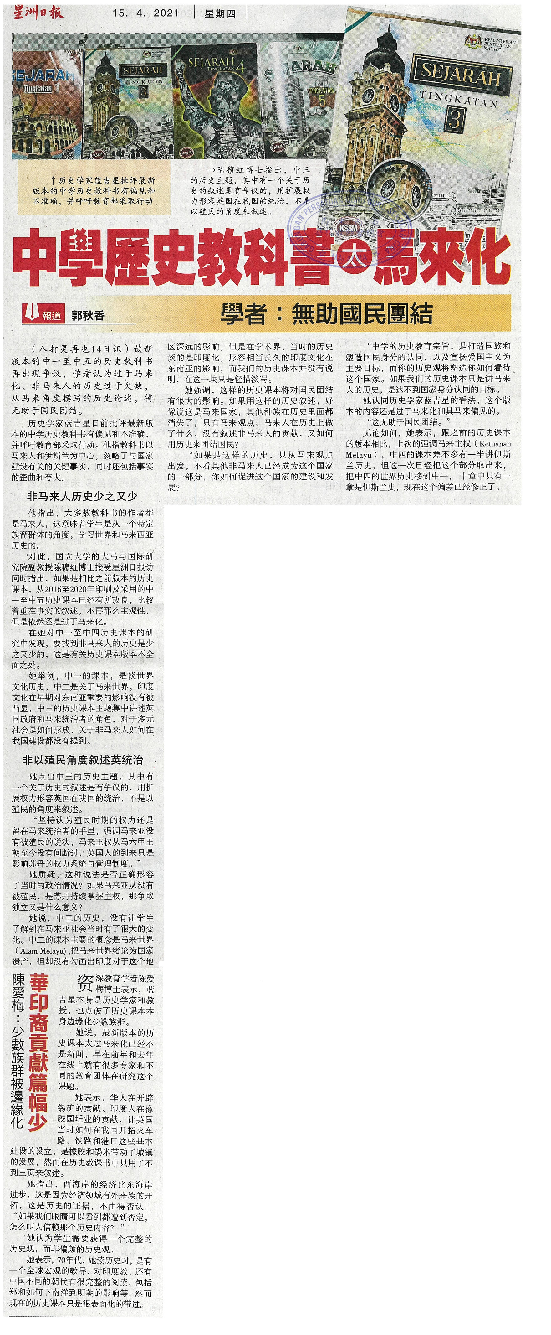 中学历史教科书太马来化 学者:无助国民团结 WhatsApp 上一篇文章: 公民华小 教育理念受认可 100%友族生 上一页 下一篇文章: 男子致函希盟教部促承认统考 3年后获恢复 “反馈被拒” 下一页