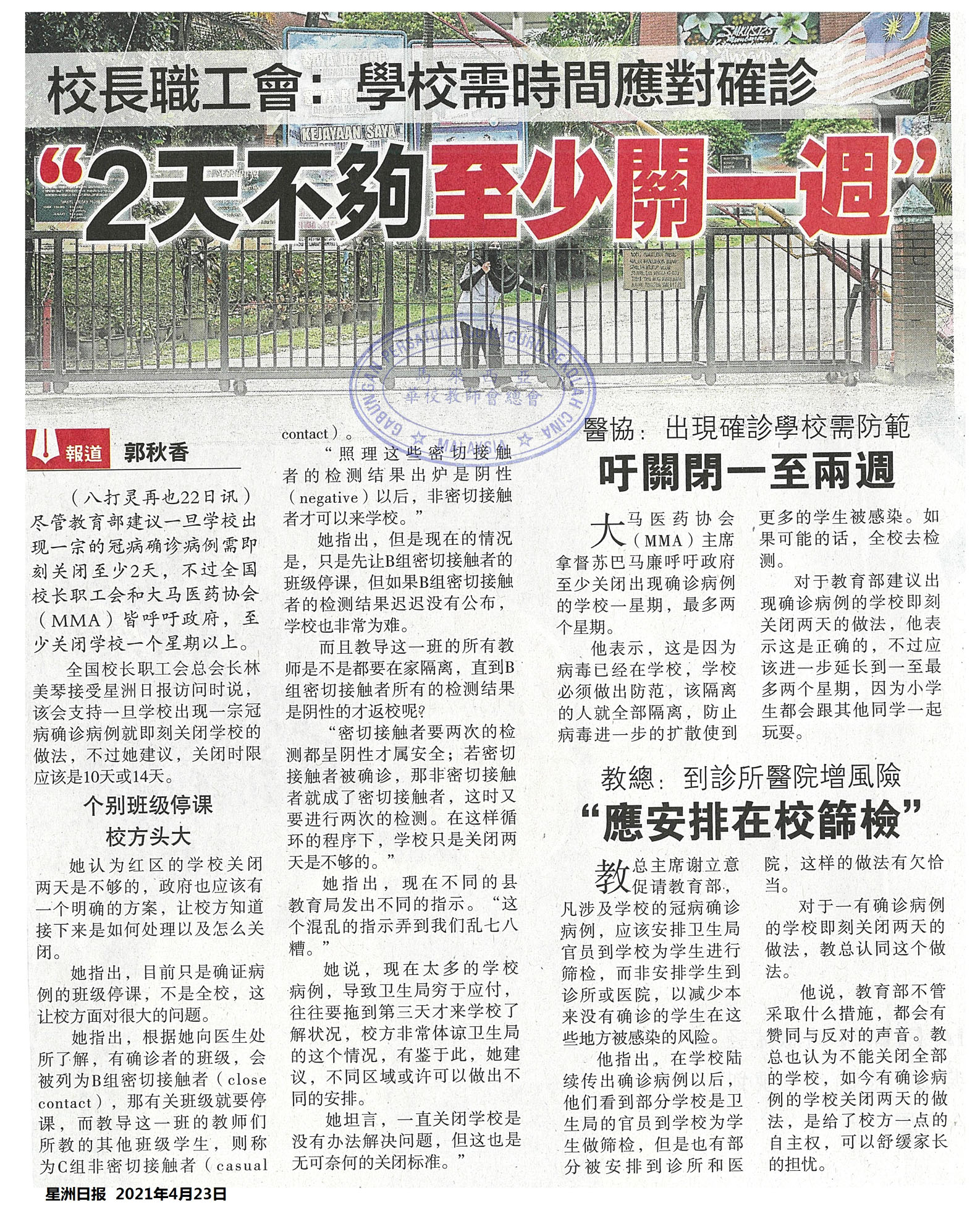 校长职工会:学校需时间应对确诊 “2天不够至少关一周” WhatsApp 上一篇文章: 隆雪华堂:嫌少谈一国之都 中三历史忽略隆历史 上一页 下一篇文章: 呀吃十八里中华华小 零华裔100%友族学生 下一页