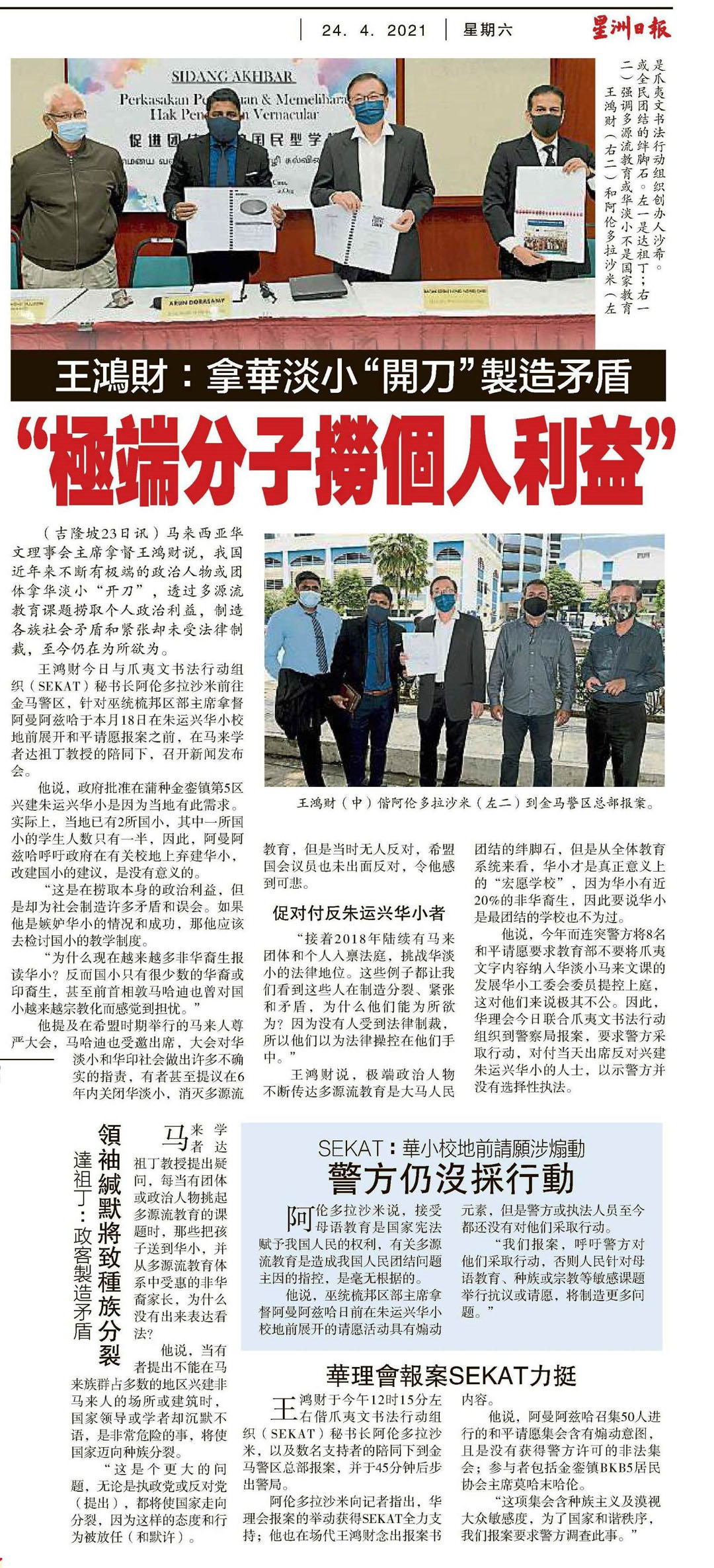王鸿财:拿华淡小”开刀“制造矛盾 极端分子捞个人利益 WhatsApp 上一篇文章: 新邦摩立华小设备完善 友族学生 逐年增加 上一页 下一篇文章: 编协:中文报没扭曲爪夷文课题 刘镇东强套莫须有罪名 下一页