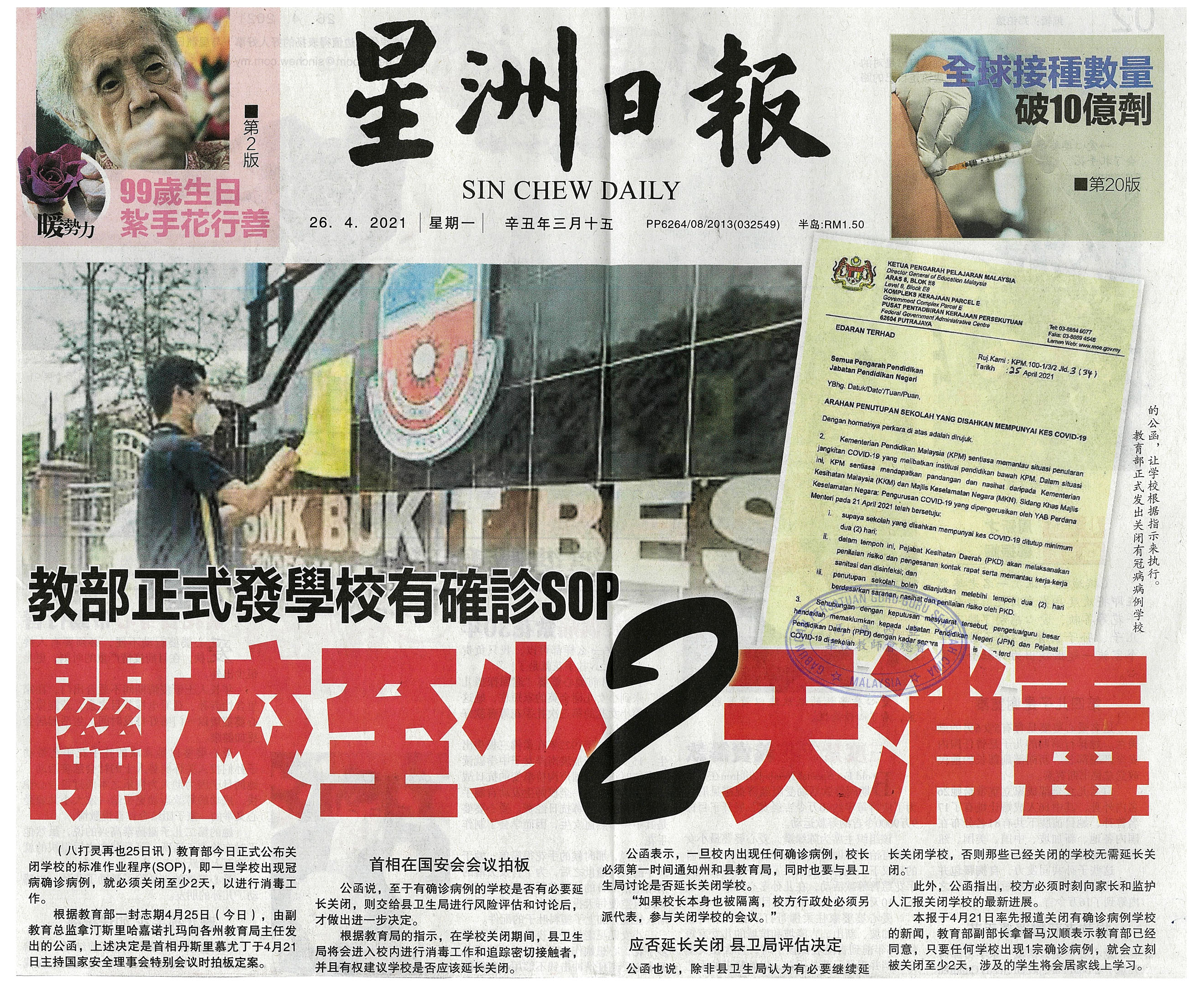 教部正式发学校有确诊SOP关校至少2天消毒