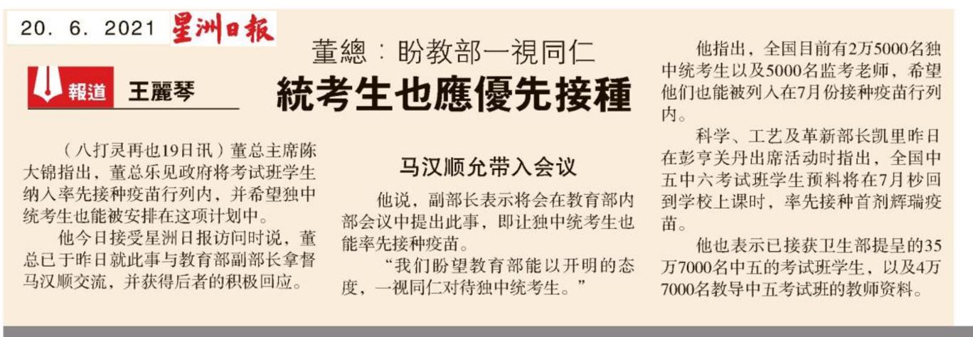 董总:盼教育部一视同仁 统考生也应优先接种