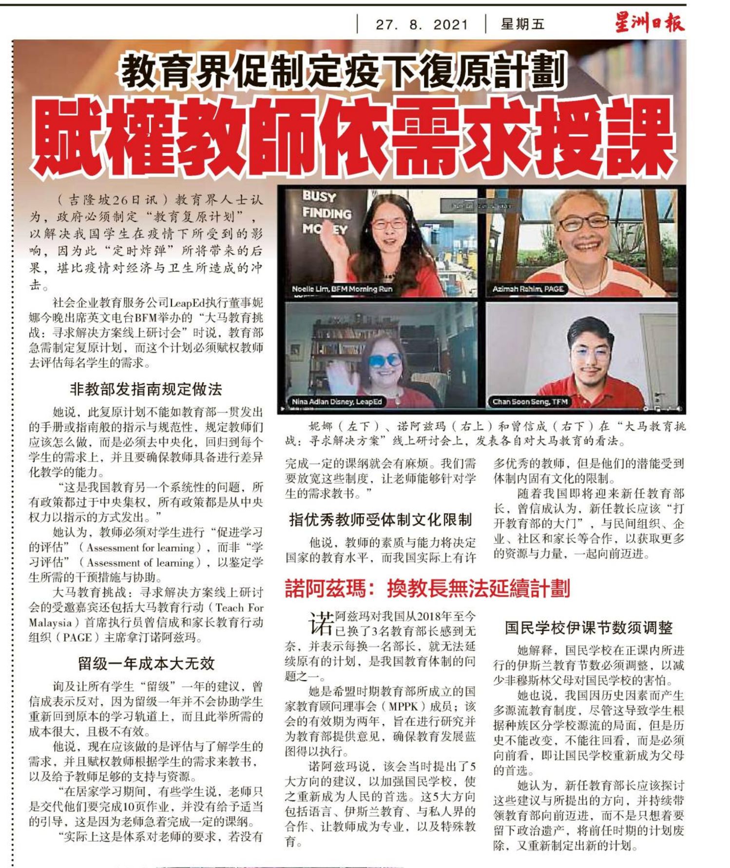 教育界促制定疫下复原计划 赋权教师依需求授课 WhatsApp 上一篇文章: 教育总监:推介PerkasaKU 缩短疫期教学差距 上一页 下一篇文章: 展延复课 网课至10月3日 教长:考试班优先返校 下一页