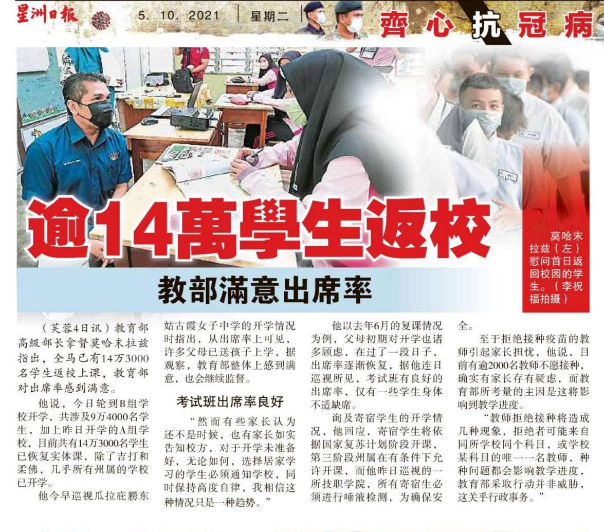 逾14万学生返校 教育部满意出席率