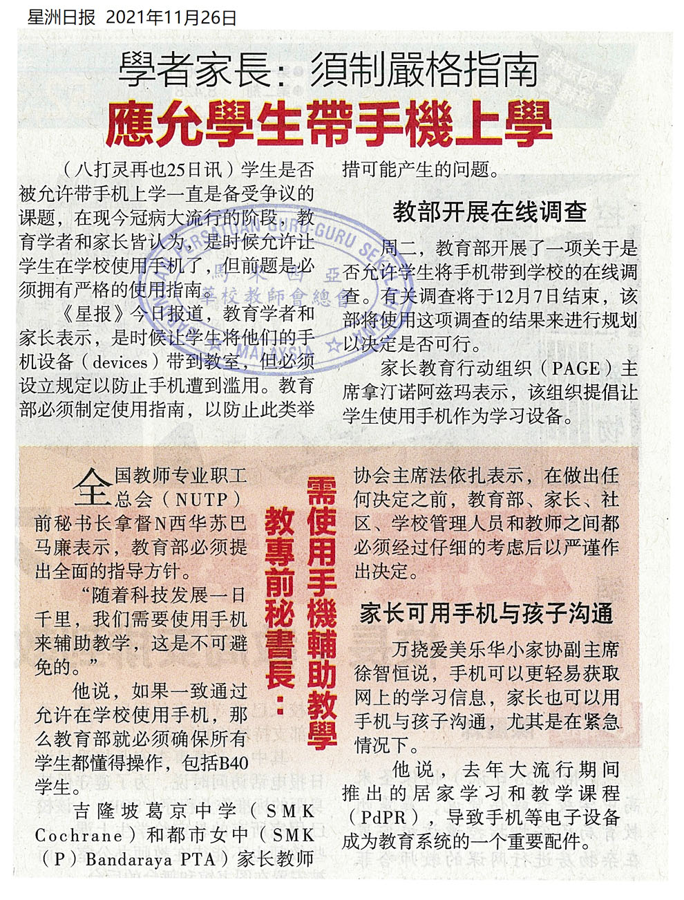学者家长:需制严格指南 应允学生带手机上学