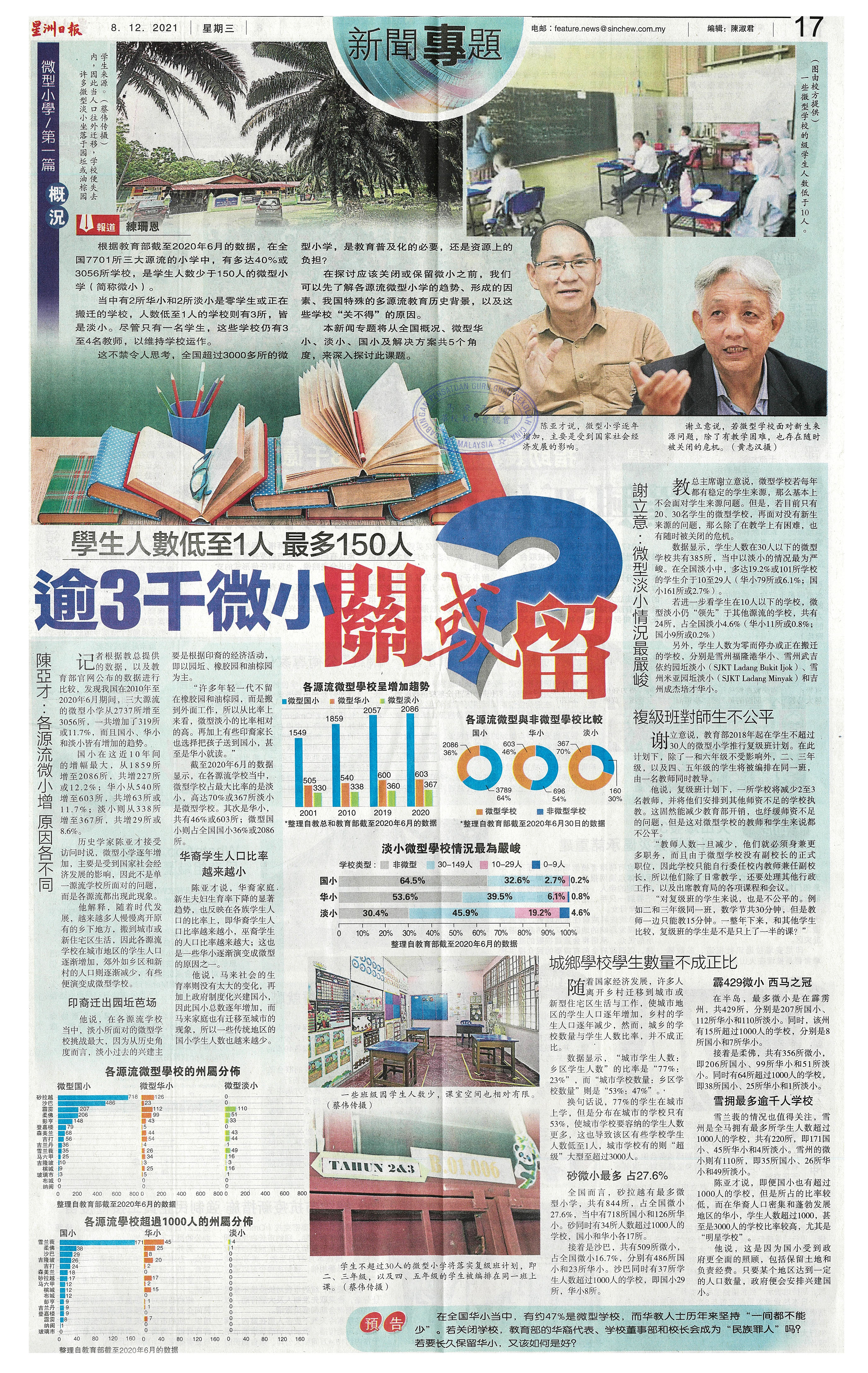 学生人数低至1人,最多150人,逾3千微小关或留 WhatsApp 上一篇文章: 学生少 想迁校 又烦钱 华小一间不能少 挑战大 上一页 下一篇文章: 董教总:1月3报到影响行政教学 学期未完教师转校欠妥 下一页