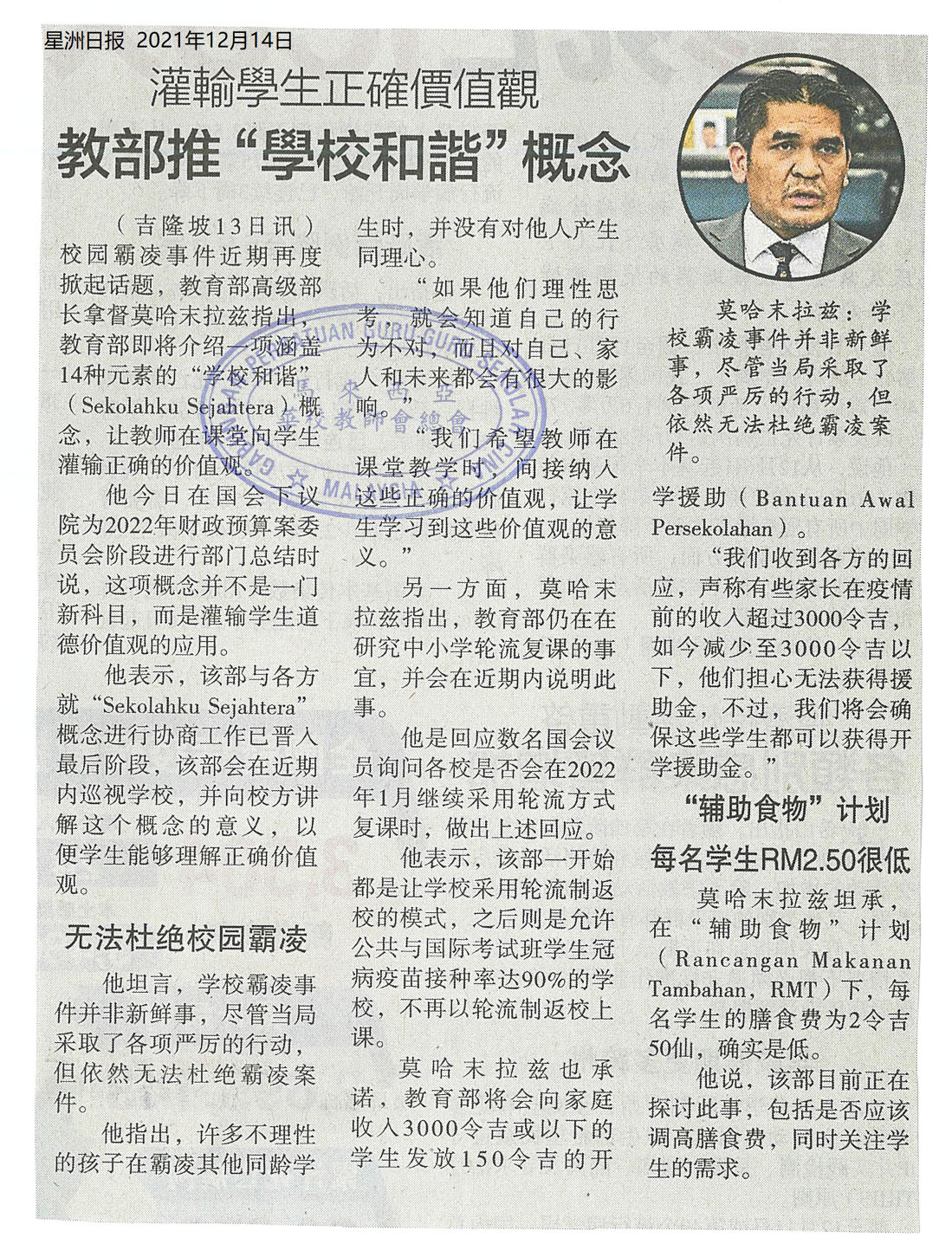 灌输学生正确价值观 教部推学校和谐概念