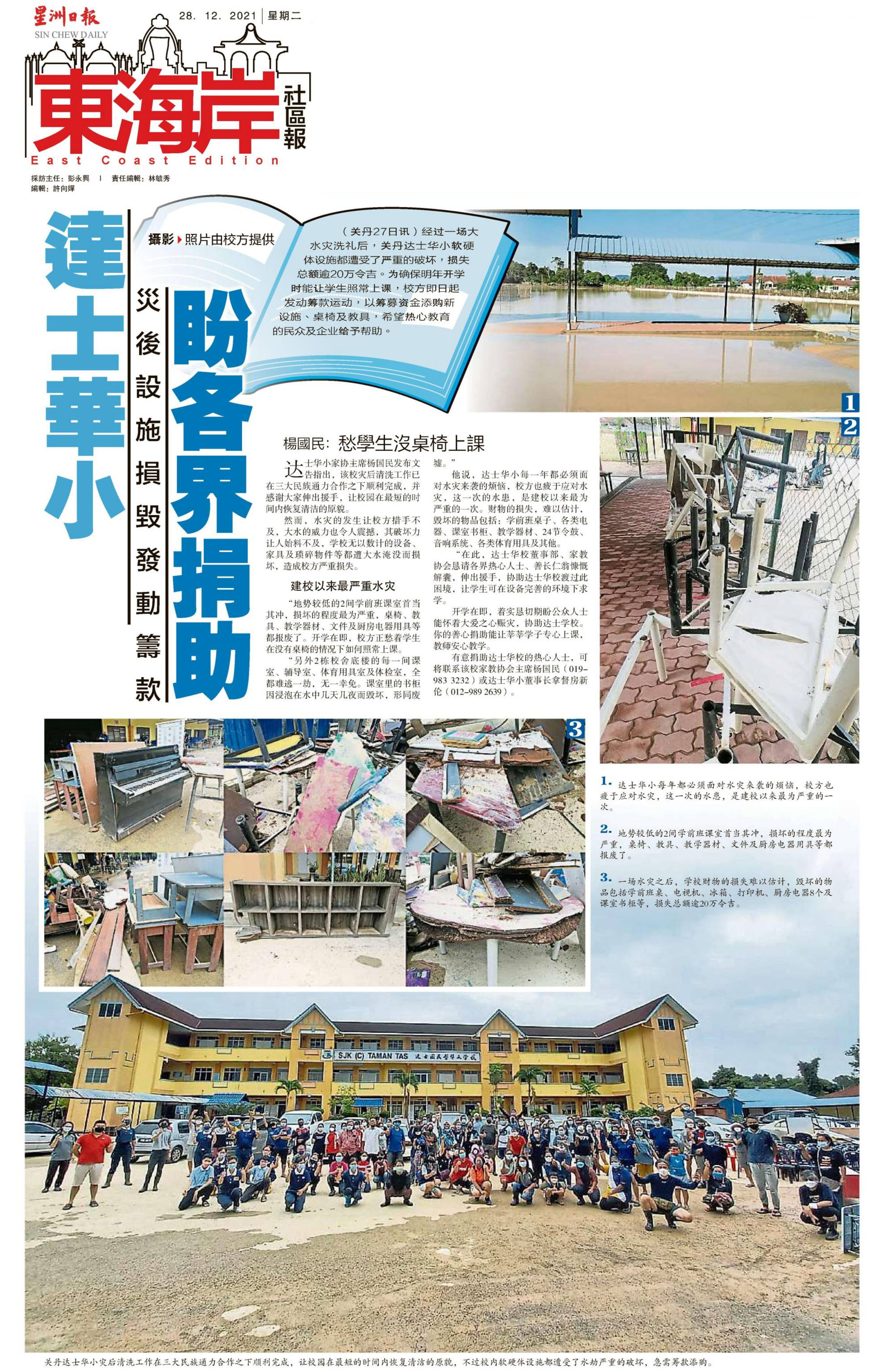 达士华小灾后设施损毁发动筹款 盼各界捐助