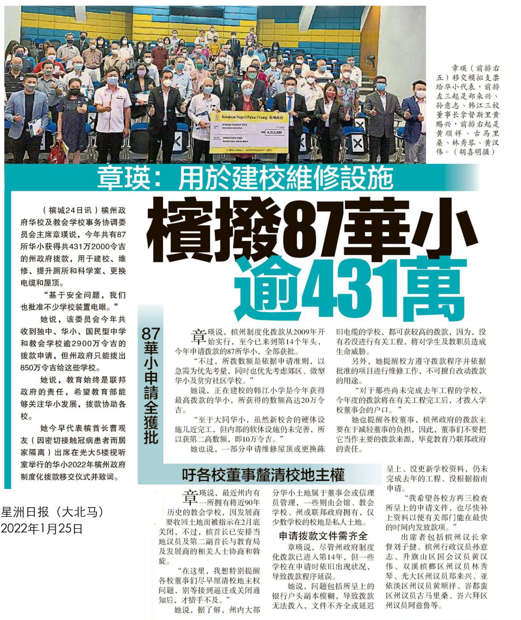 章瑛:用于建校维修设施 槟拨87华小逾431万 WhatsApp 上一篇文章: 诺希山:情况令人担忧 教育感染群第3周飙313% 上一页 下一篇文章: 朱小原建委会抨金銮镇建委会 “图政治化华小建校课题” 下一页
