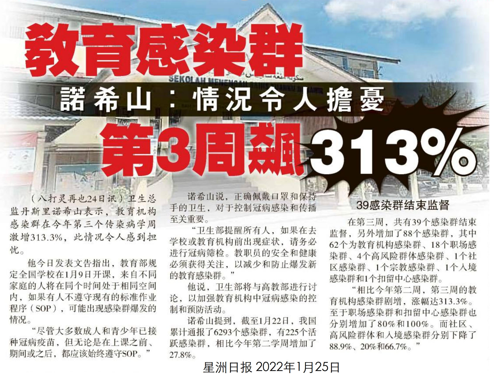 诺希山:情况令人担忧 教育感染群第3周飙313%