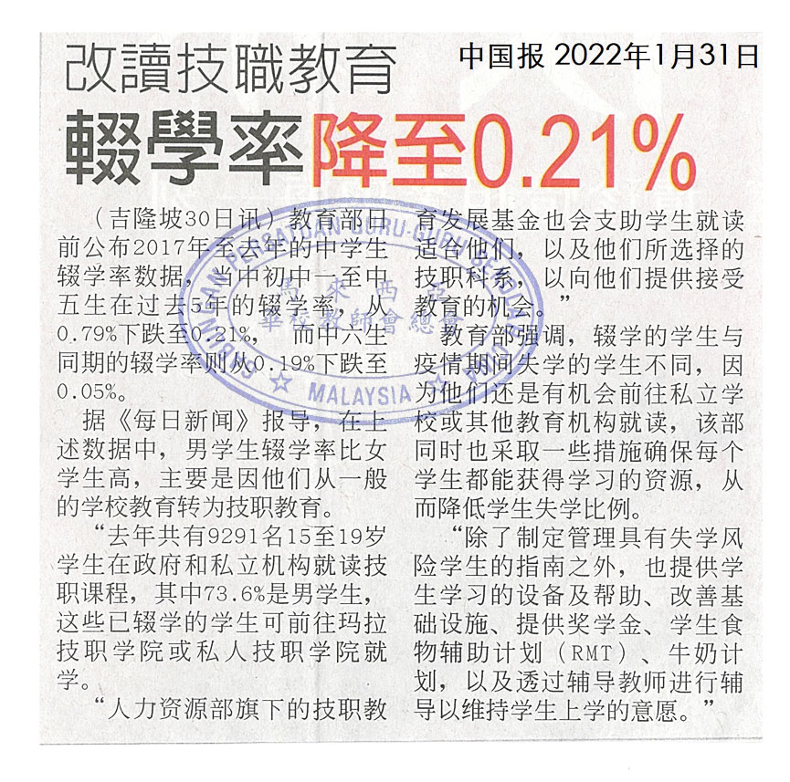改读技职教育 辍学率降至0.21%