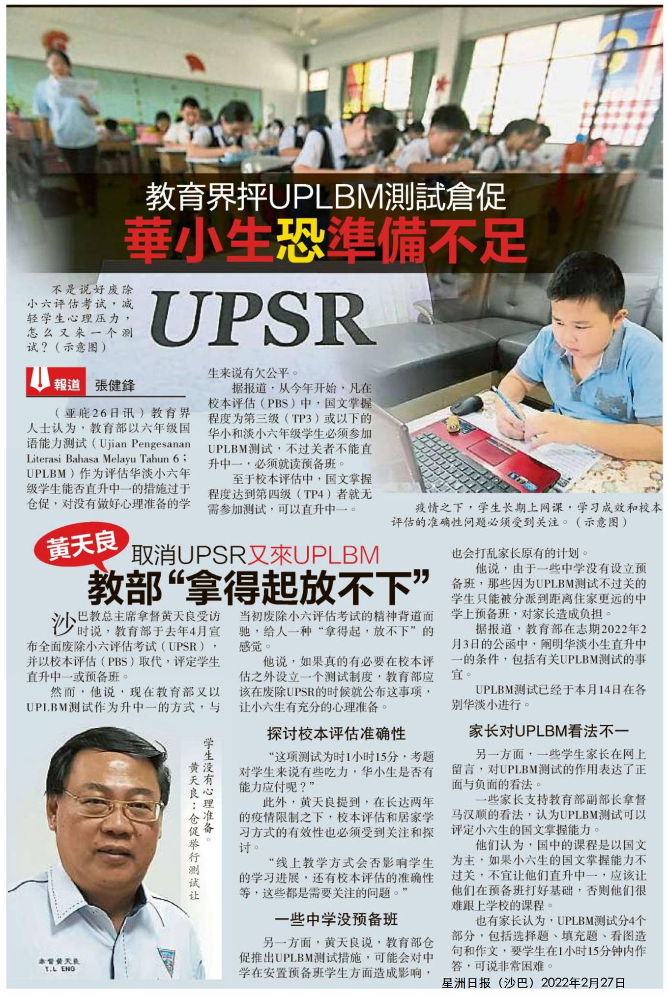 教育界抨UPLBM测试仓促 华小生恐准备不足