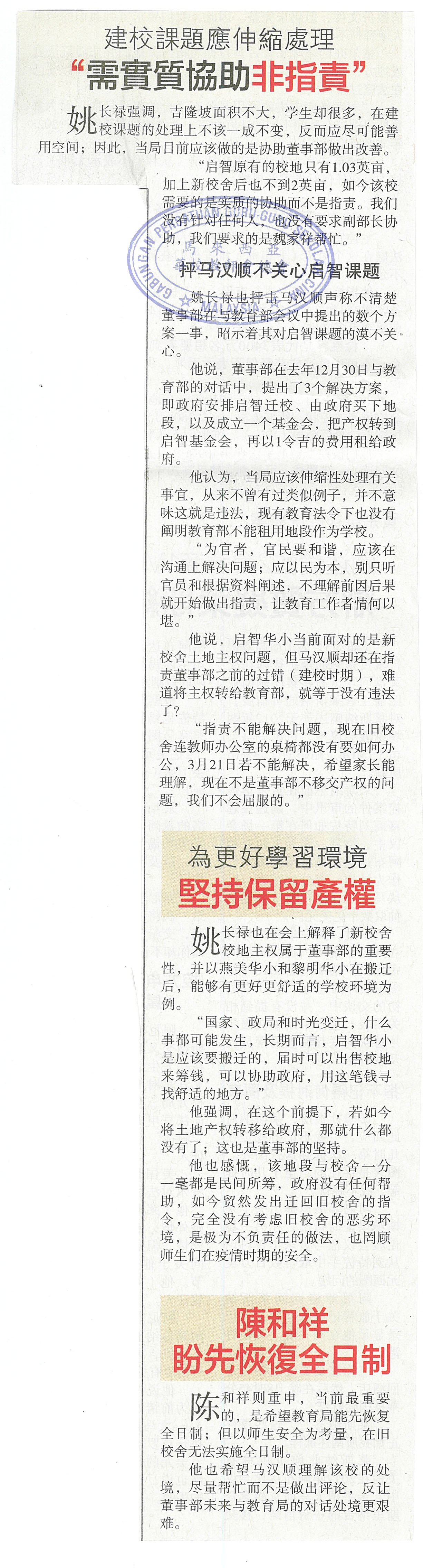 下一篇文章: 黄思汉:不宜详谈 由大臣公布新独中详情