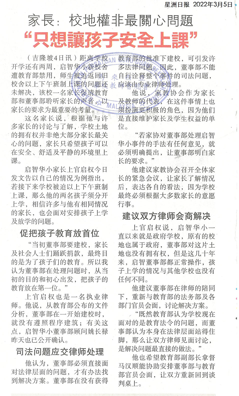 吉隆坡启智华小新校舍风波