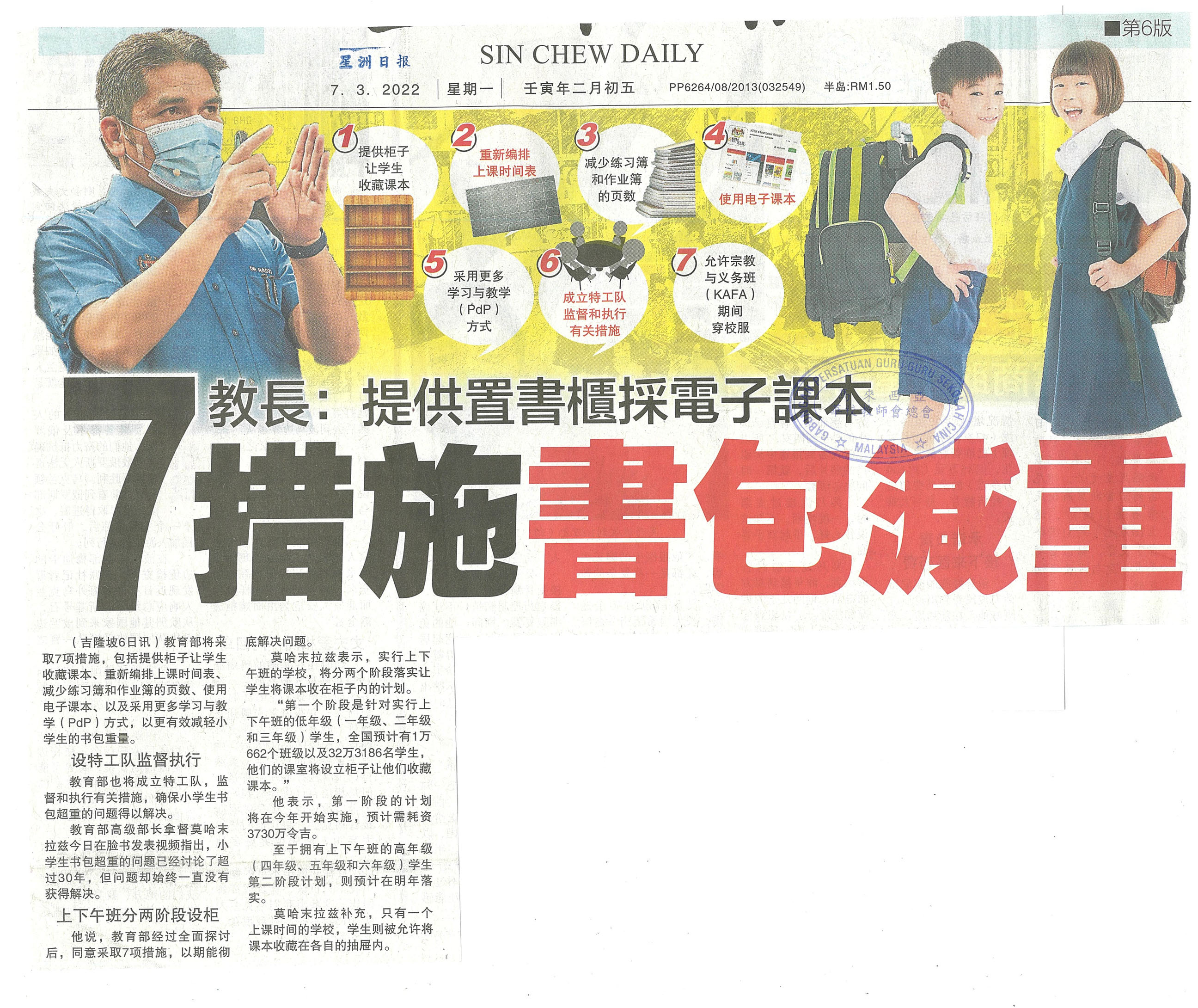 教育部长:提供置书柜采电子课本 7措施书包减重