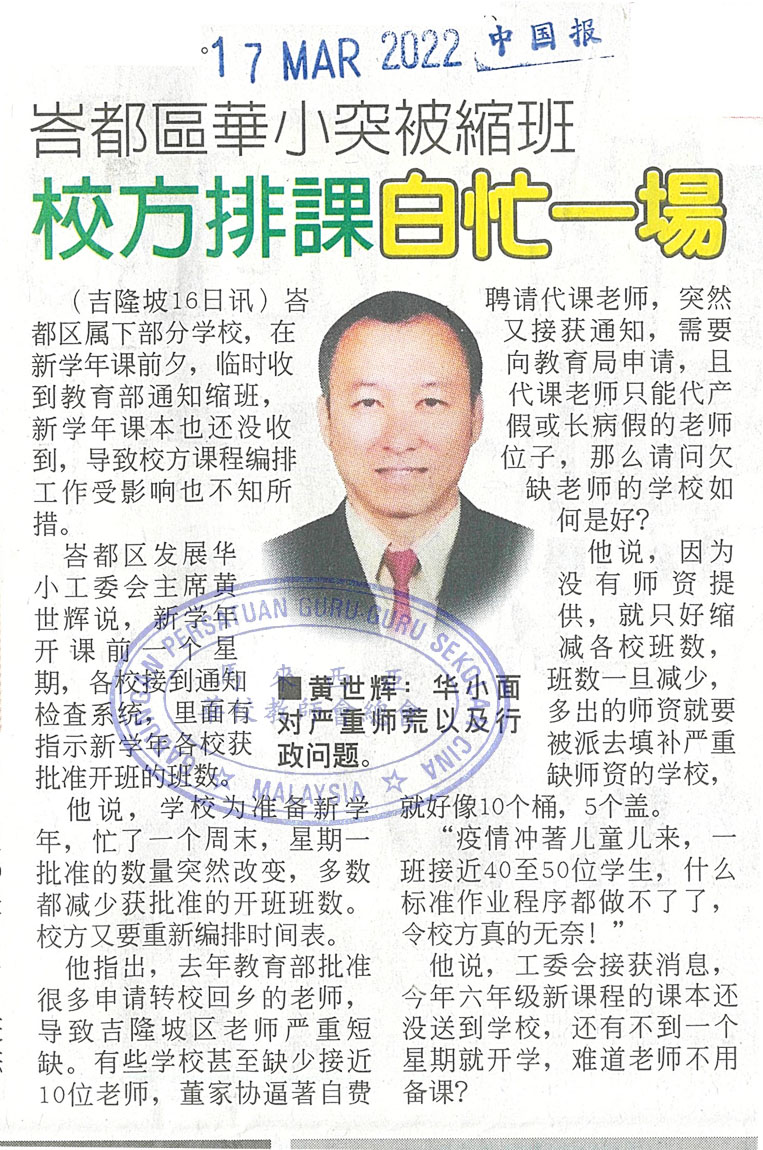 峇都区华小突被缩班 校方排课白忙一场