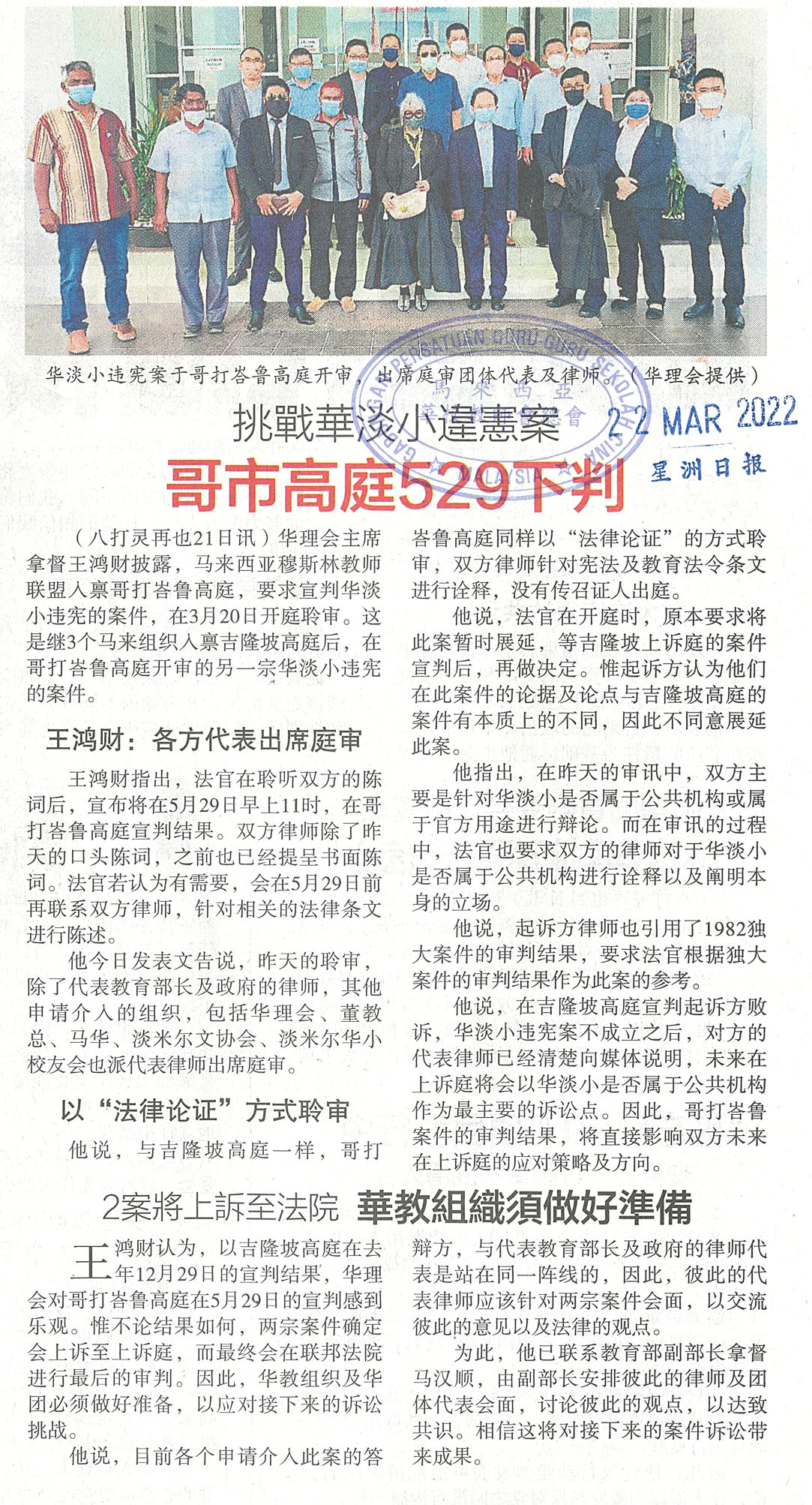 挑战华淡小违宪案 哥市高庭529下判